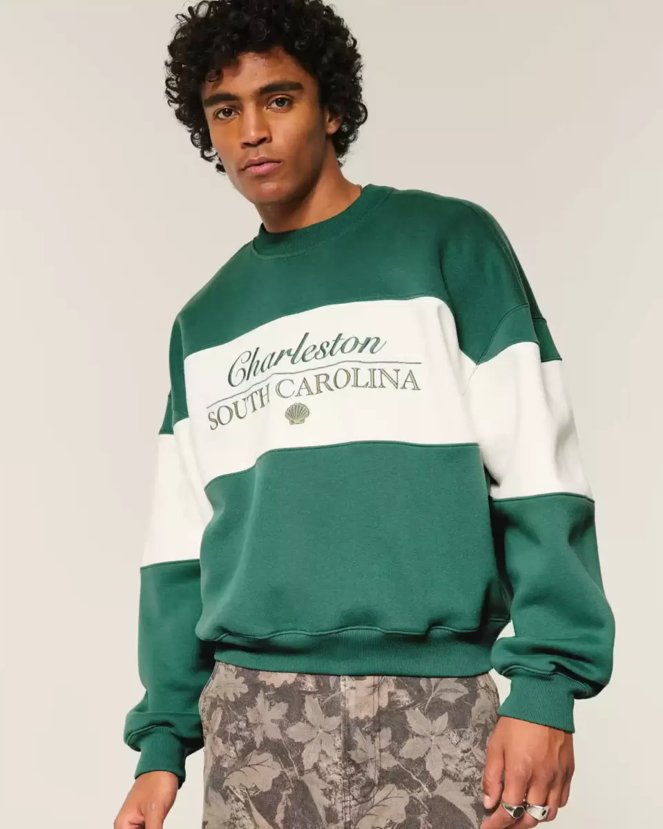 This super soft fleece sweatshirt features Charleston South Carolina graphic embroidery. Crew neckline, long sleeves. Baggy Cinch Fit. Imported.