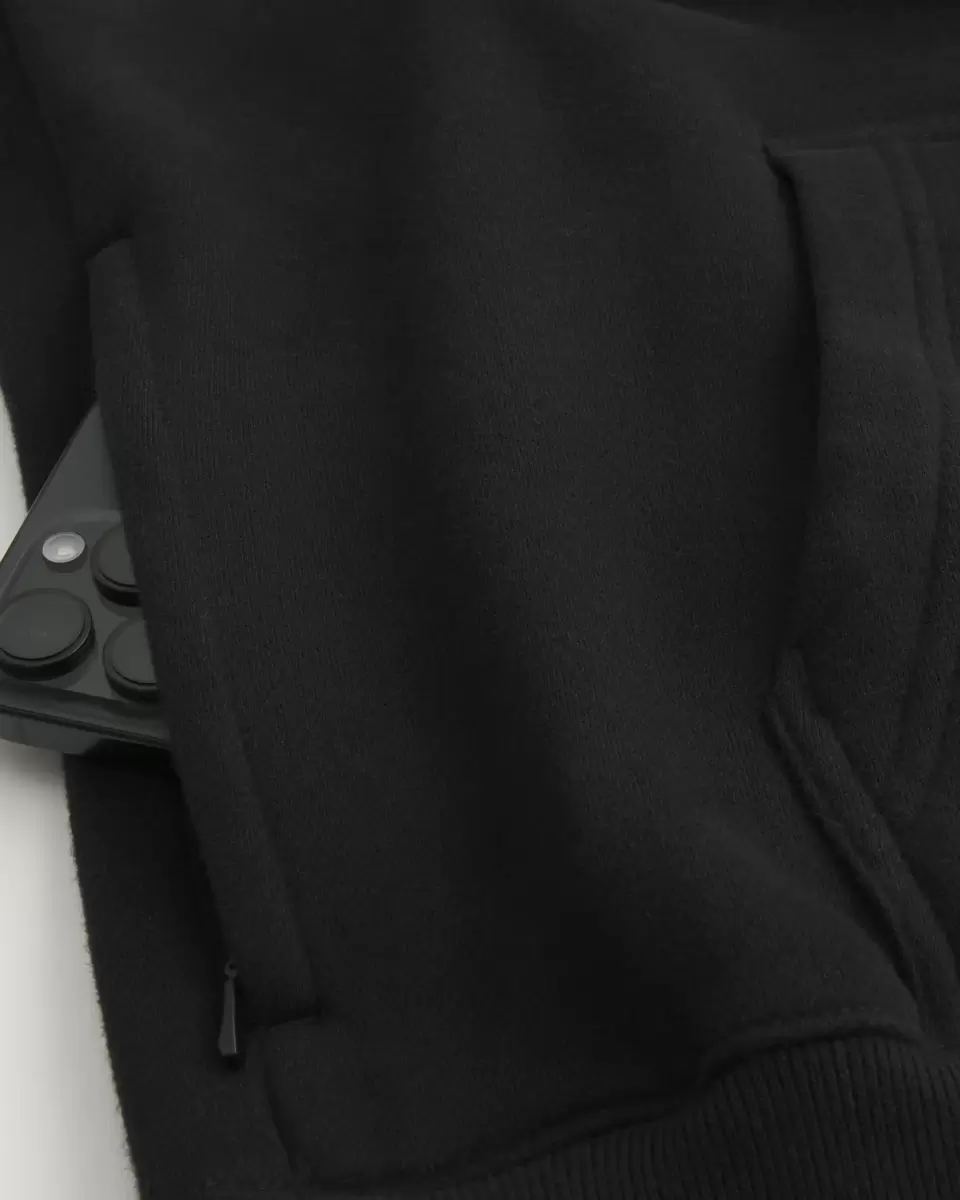 A super soft fleece hoodie with long sleeves and a front pouch pocket. Hood. Boxy Fit. Imported.