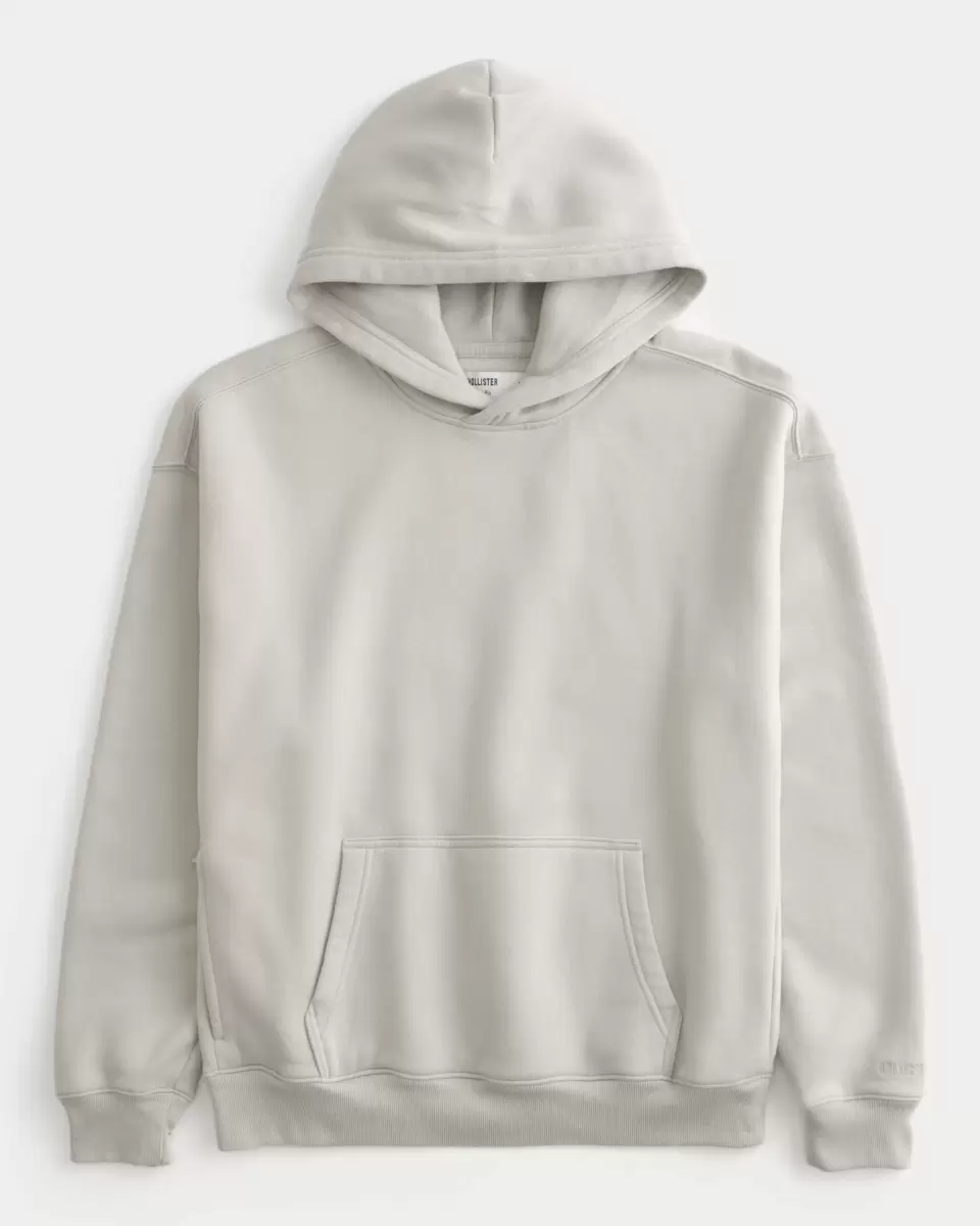 This super soft fleece hoodie is designed with a front pouch pocket and long sleeves. Embroidered logo detail at left sleeve, hood. Boxy Fit. Imported.