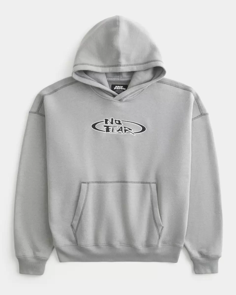 A super soft fleece hoodie featuring official licensed No Fear graphic embroidery. Hood, front pouch pocket, long sleeves. Boxy Fit.