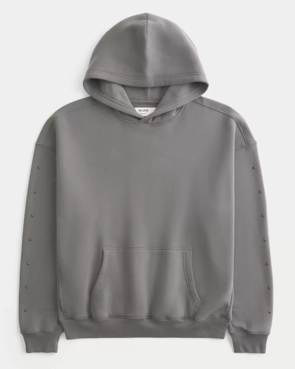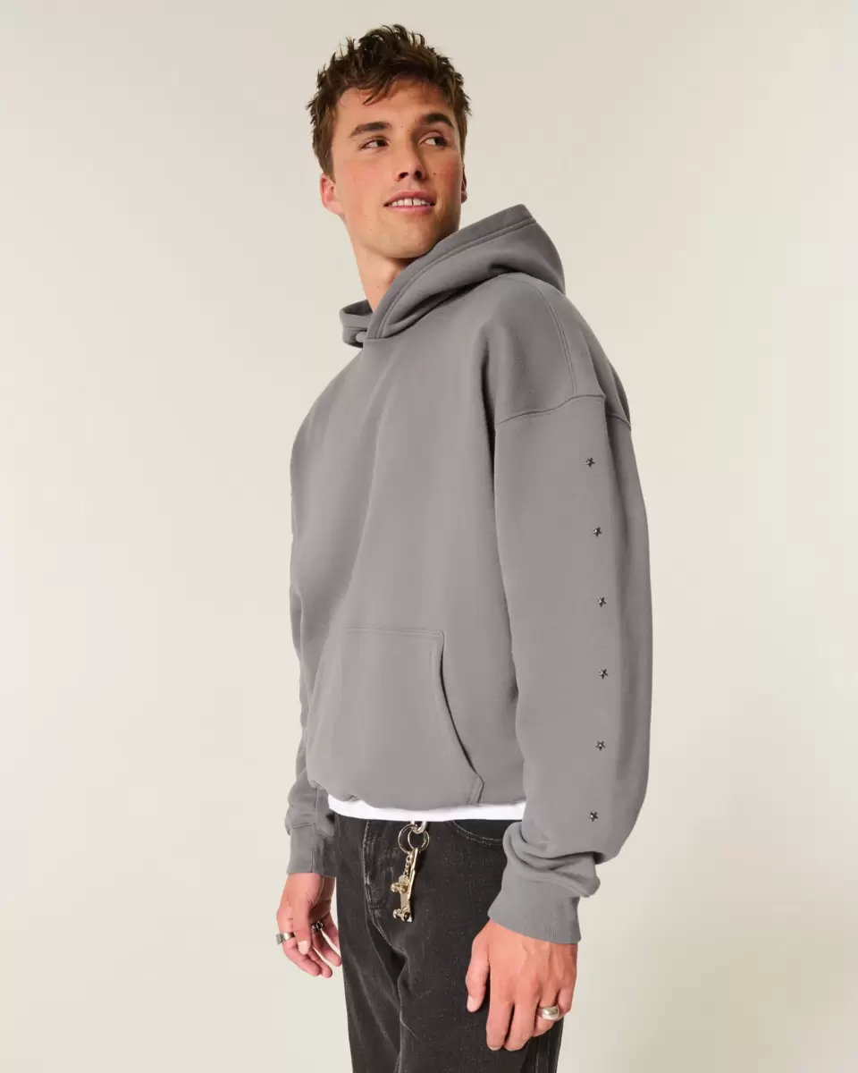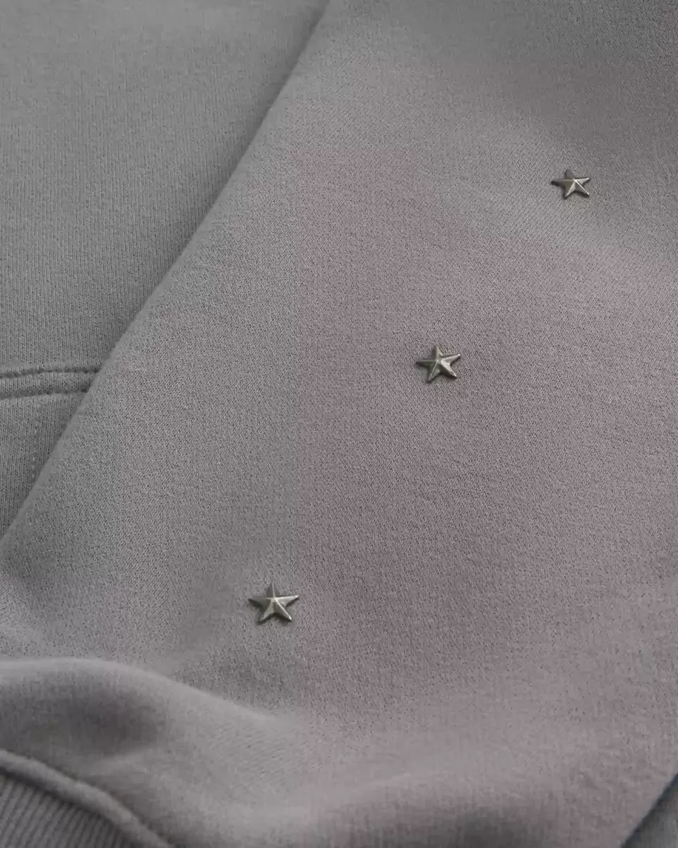 A super soft fleece hoodie featuring star details. Front pouch pocket, long sleeves, hood. Boxy Fit. Imported.