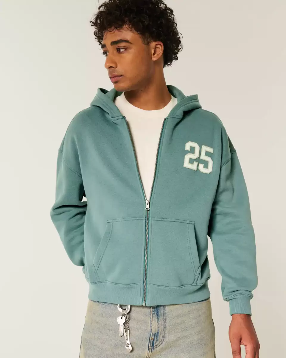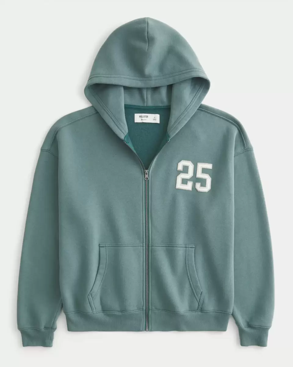 This super soft fleece hoodie features varsity-inspired number graphic applique at the left chest. Full zip-up closure, hood, front pockets, long sleeves. Boxy Fit.