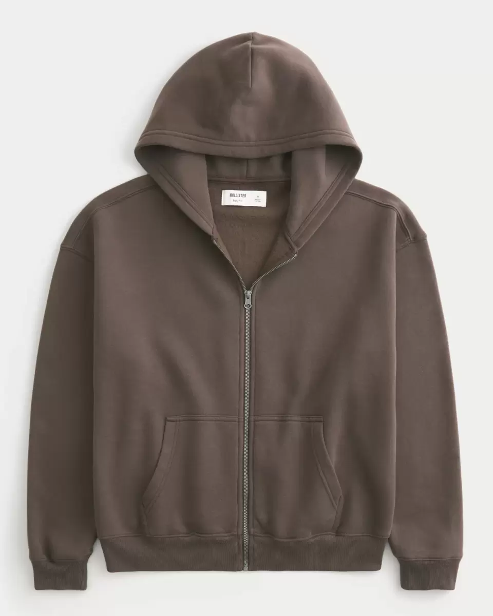 This super soft fleece hoodie has a full zip-up closure and front pockets. Long sleeves, hood. Boxy Fit. Imported.