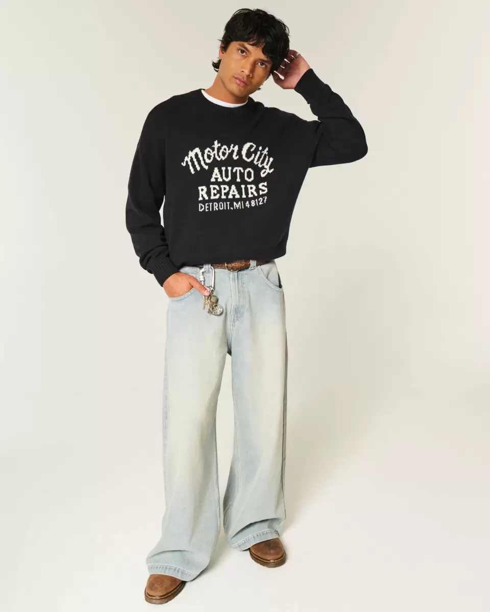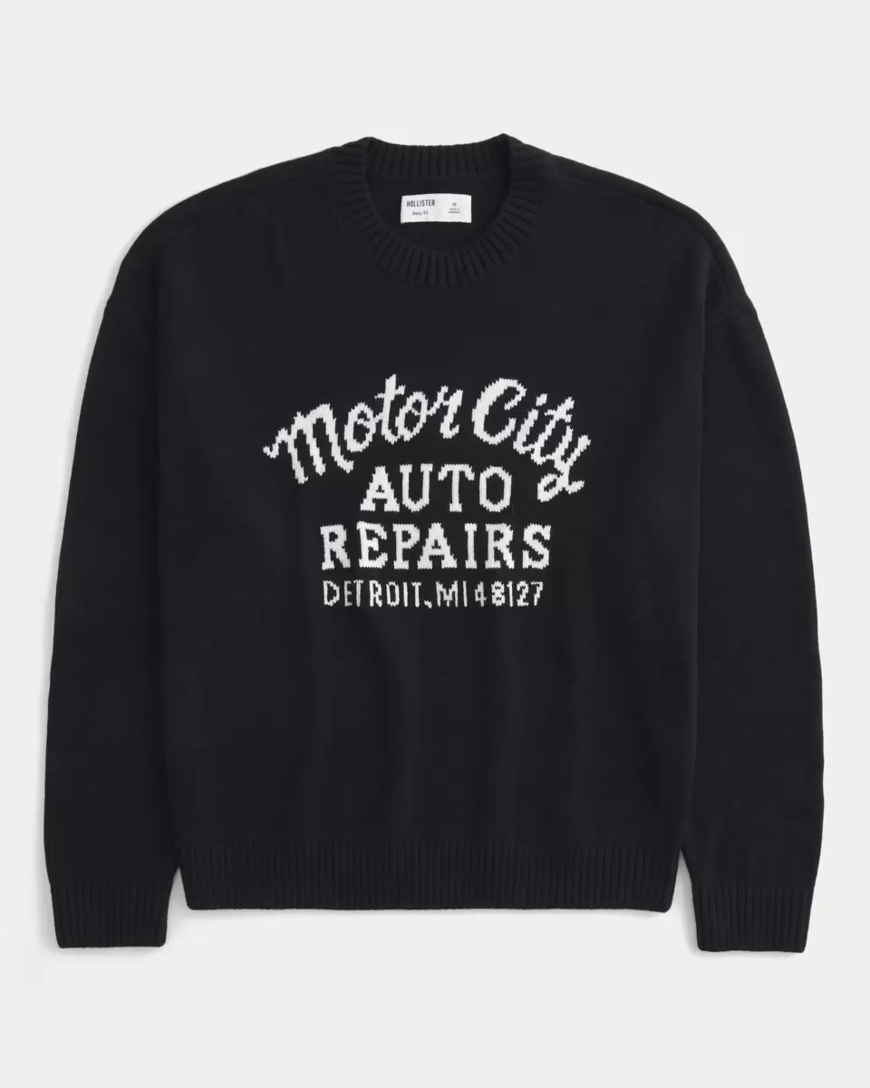 Boxy Motor City Auto Repairs Graphic Crew Sweater