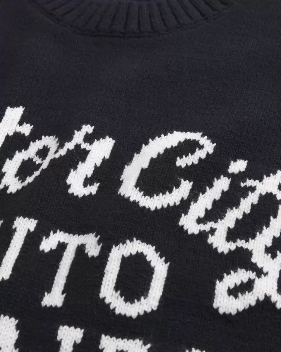 A super soft and comfortable sweater with Motor City Auto Repairs Detroit Michigan intarsia graphics. Crew neckline, long sleeves, ribbed trims. Boxy Fit.