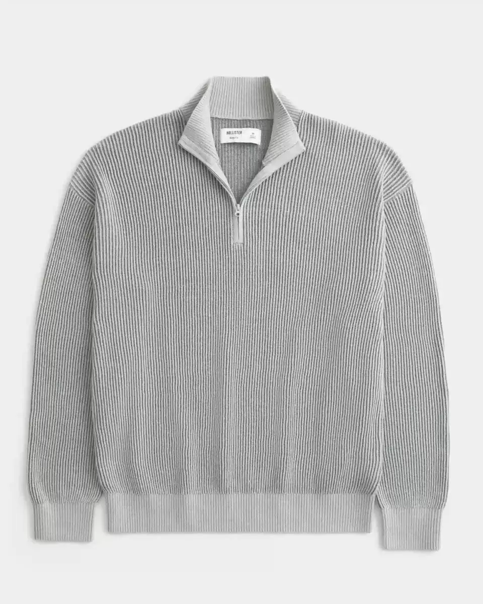 A super soft and comfortable knit sweater with a mock-neck collar and quarter-zip closure. Long sleeves. Boxy Fit. Imported.
