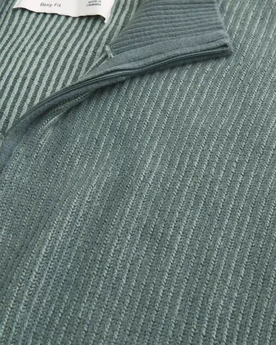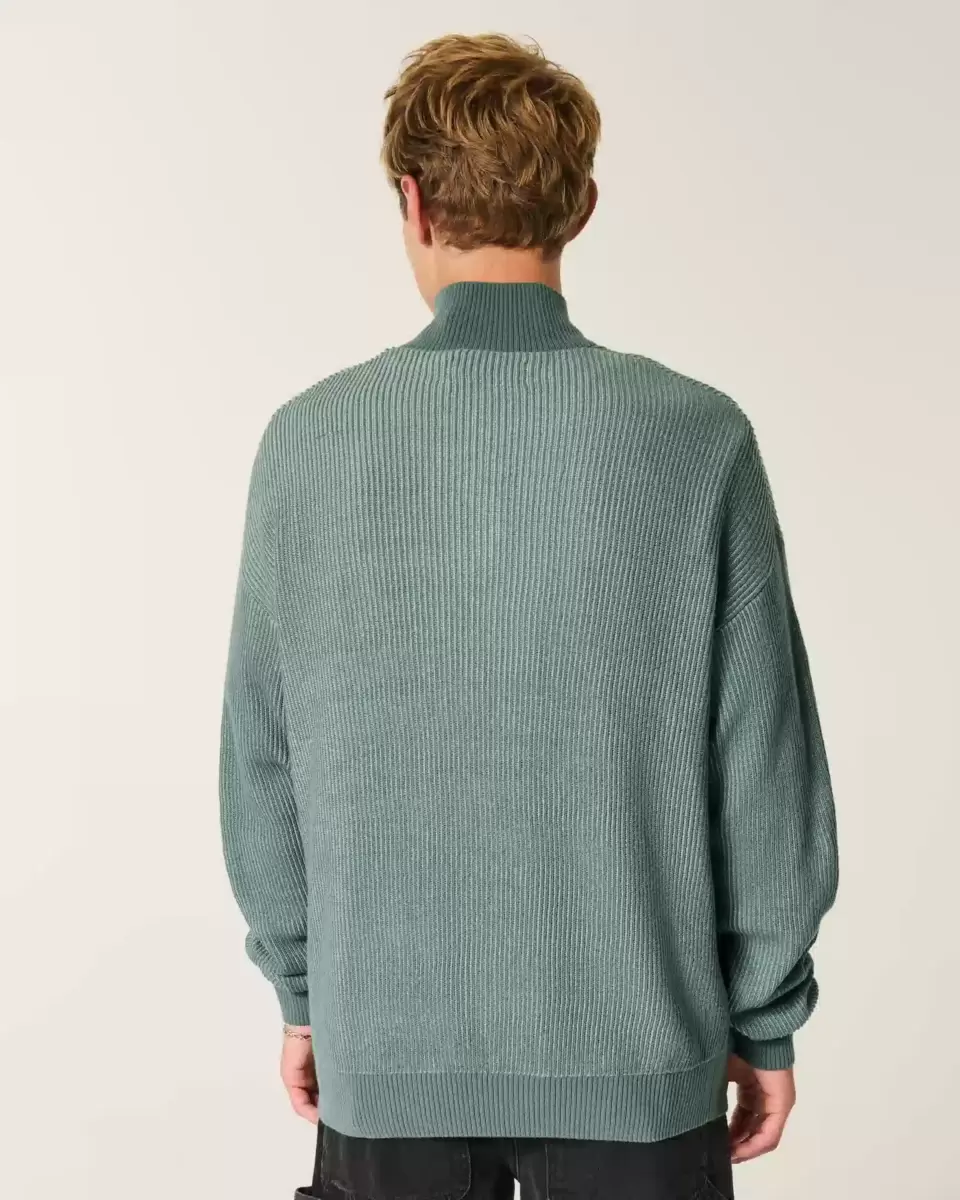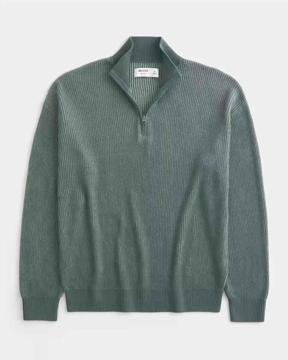 A super soft and comfortable knit sweater with a mock-neck collar and quarter-zip closure. Long sleeves. Boxy Fit.
