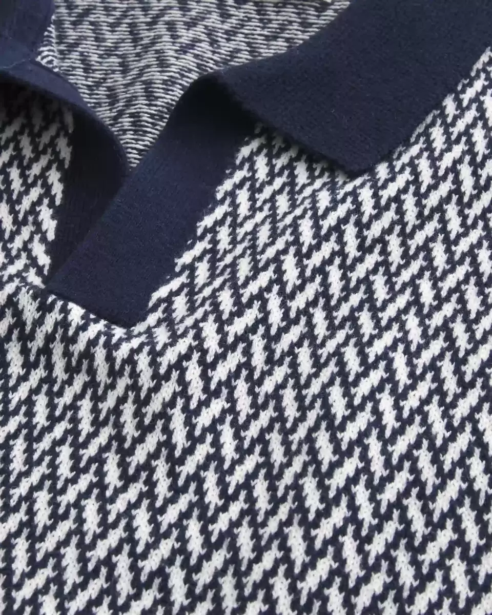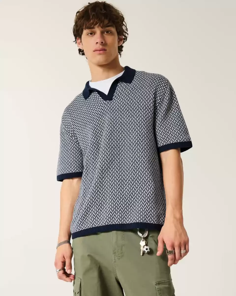 A super soft sweater-knit polo with a buttonless placket and short sleeves. Classic pattern. Boxy Fit. Imported.