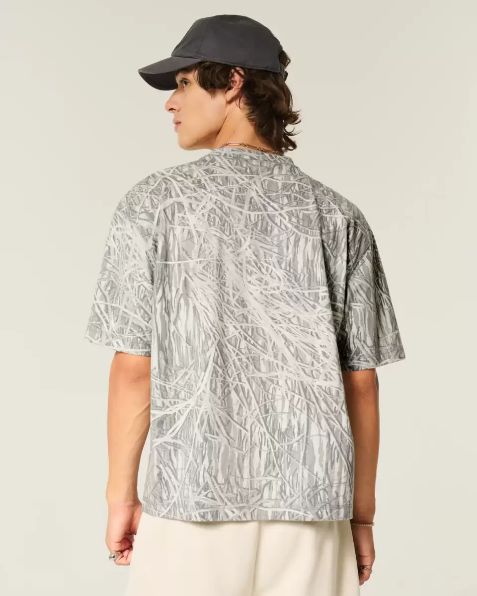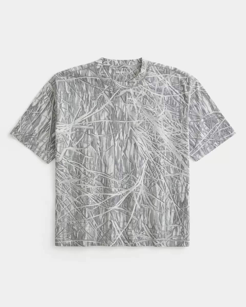 A super soft, heavyweight 100% cotton t-shirt with a crew neckline and short sleeves. All-over camo pattern. Boxy Crop Fit.