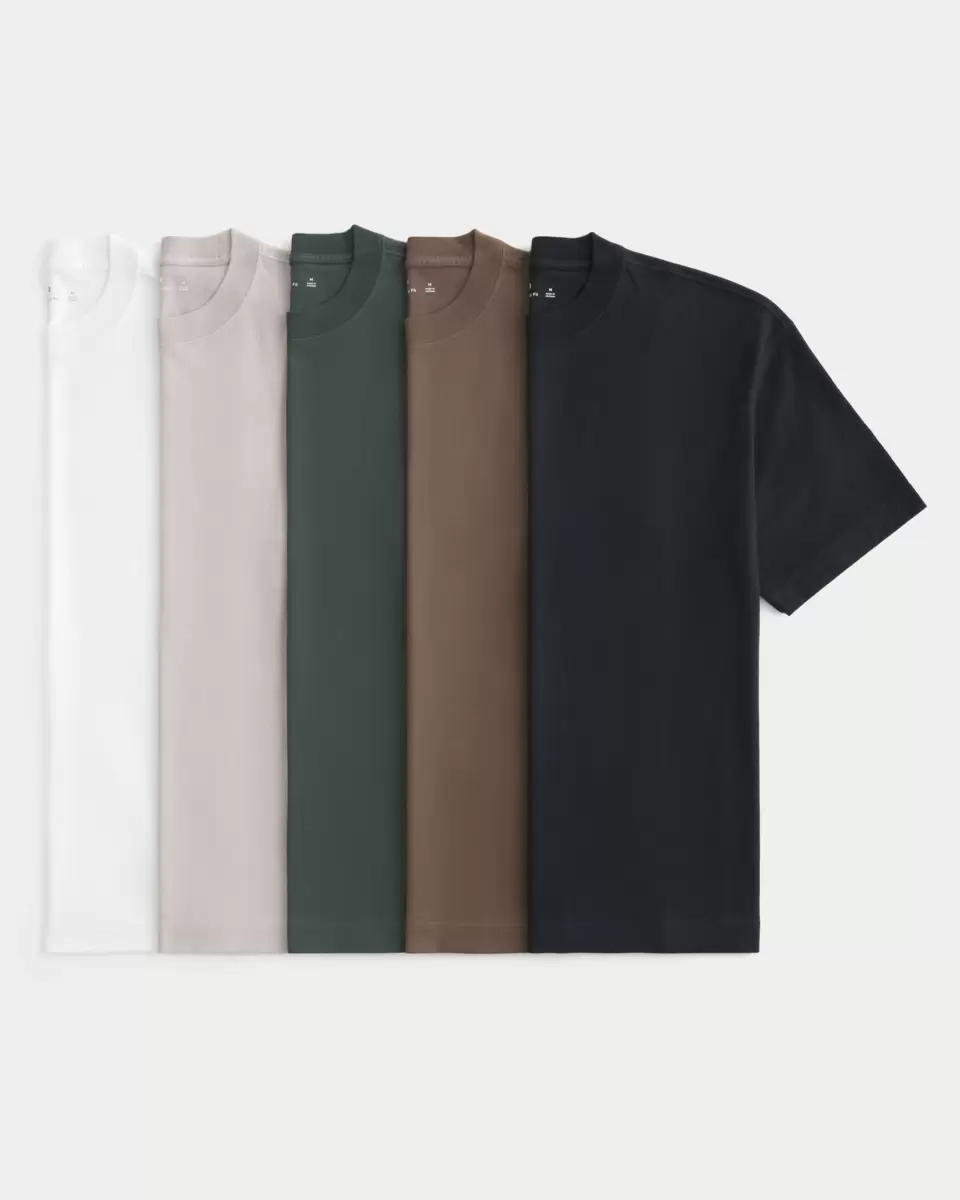 Boxy Heavyweight Cotton Crew T-Shirt 5-Pack