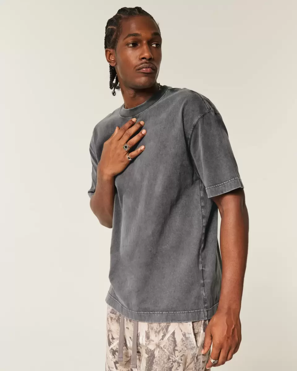 A super soft, heavyweight 100% cotton t-shirt with a crew neckline and short sleeves. Washed look. Boxy Fit.