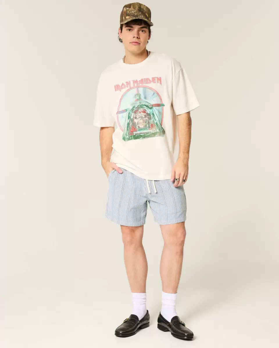 Made with super soft 100% cotton, this tee features official licensed Iron Maiden print graphics. Crew neckline, short sleeves. Boxy Fit. Imported.