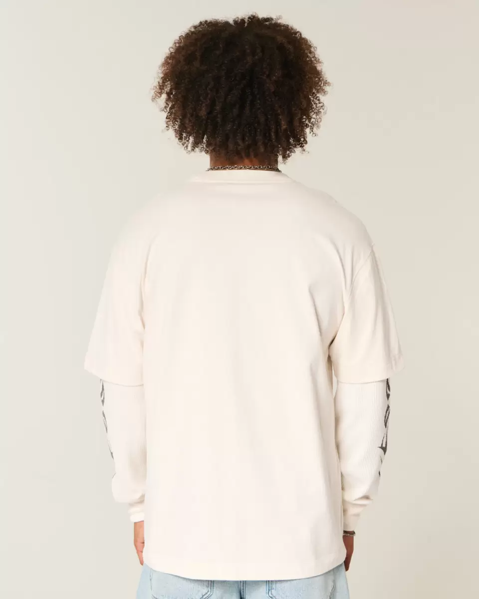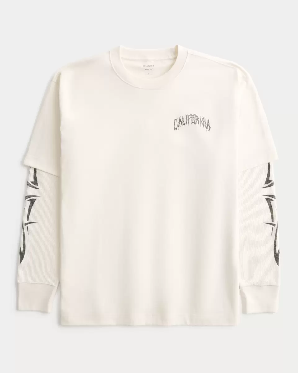 A super soft t-shirt featuring a Y2K-inspired California print graphic at the left chest and long thermal-fabric sleeves for a layered look. Crew neckline. Boxy Fit. Imported.