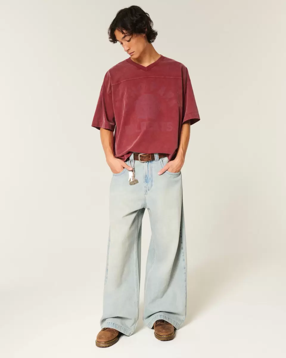 This super soft tee is made with heavyweight 100% cotton and features a faded varsity-style Echo Park Wildcats print graphic. V-neckline, short sleeves. Baggy Crop Fit.
