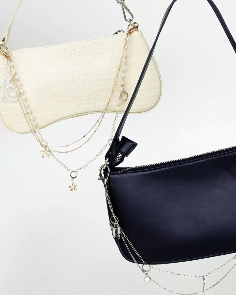 A set of cute metal charms with plastic pearl-style details. Imported.