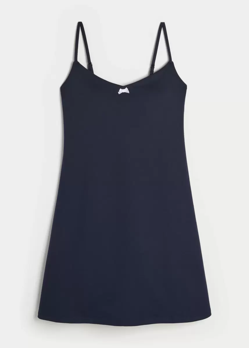This cute and comfy gameday-style active dress features a bow detail at the center neckline. Adjustable straps. Imported.