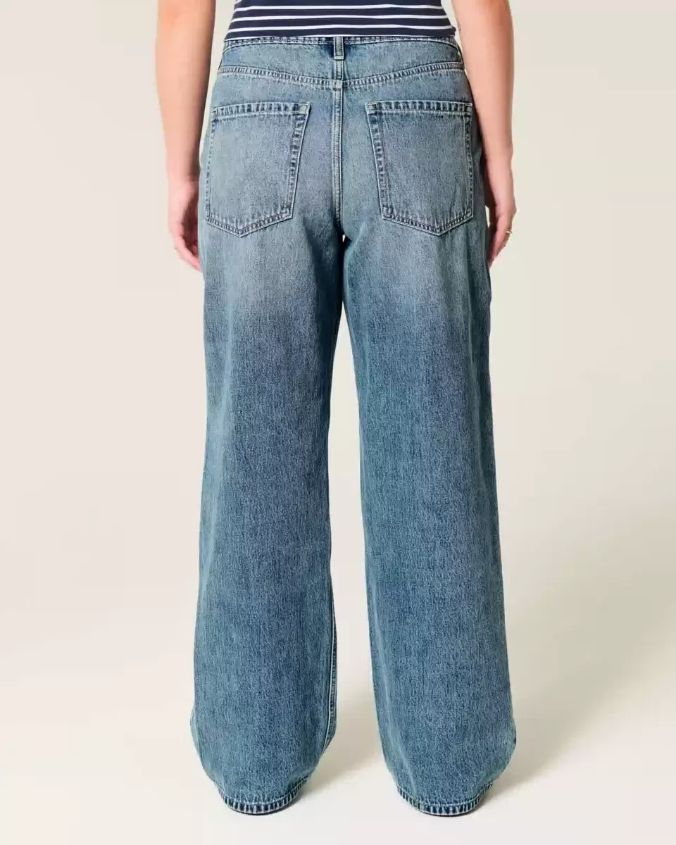 Comfortable denim jeans designed with a flattering high-rise waist and baggy leg. Fading, whiskering. Imported.