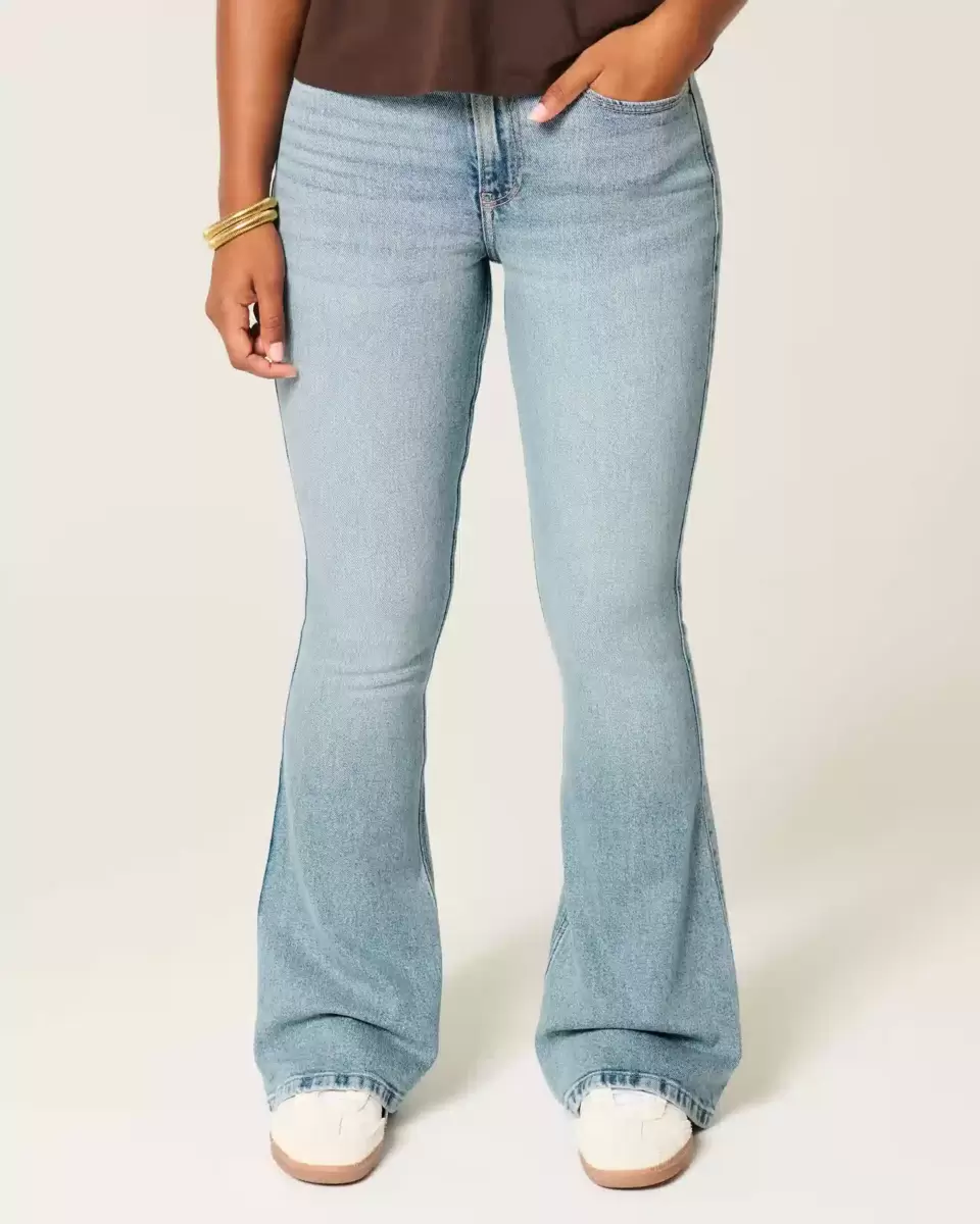 Comfortable jeans made with Vintage Stretch denim, designed with a flattering high-rise waist, slim leg and flared hem. Medium wash with fading and whiskering. Imported.
