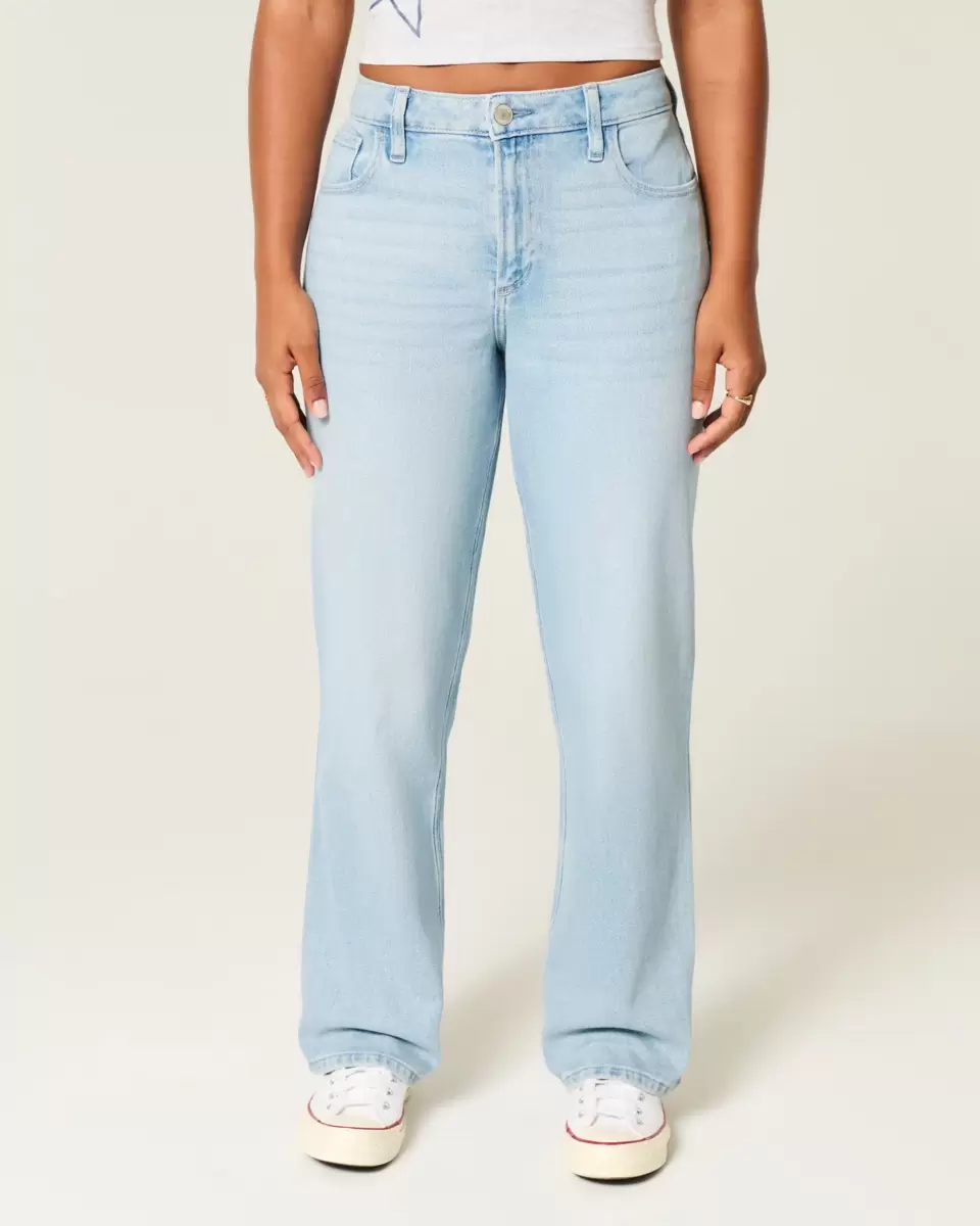 These comfy jeans are designed with a high-rise waist and relaxed leg. Fading, whiskering. Imported.