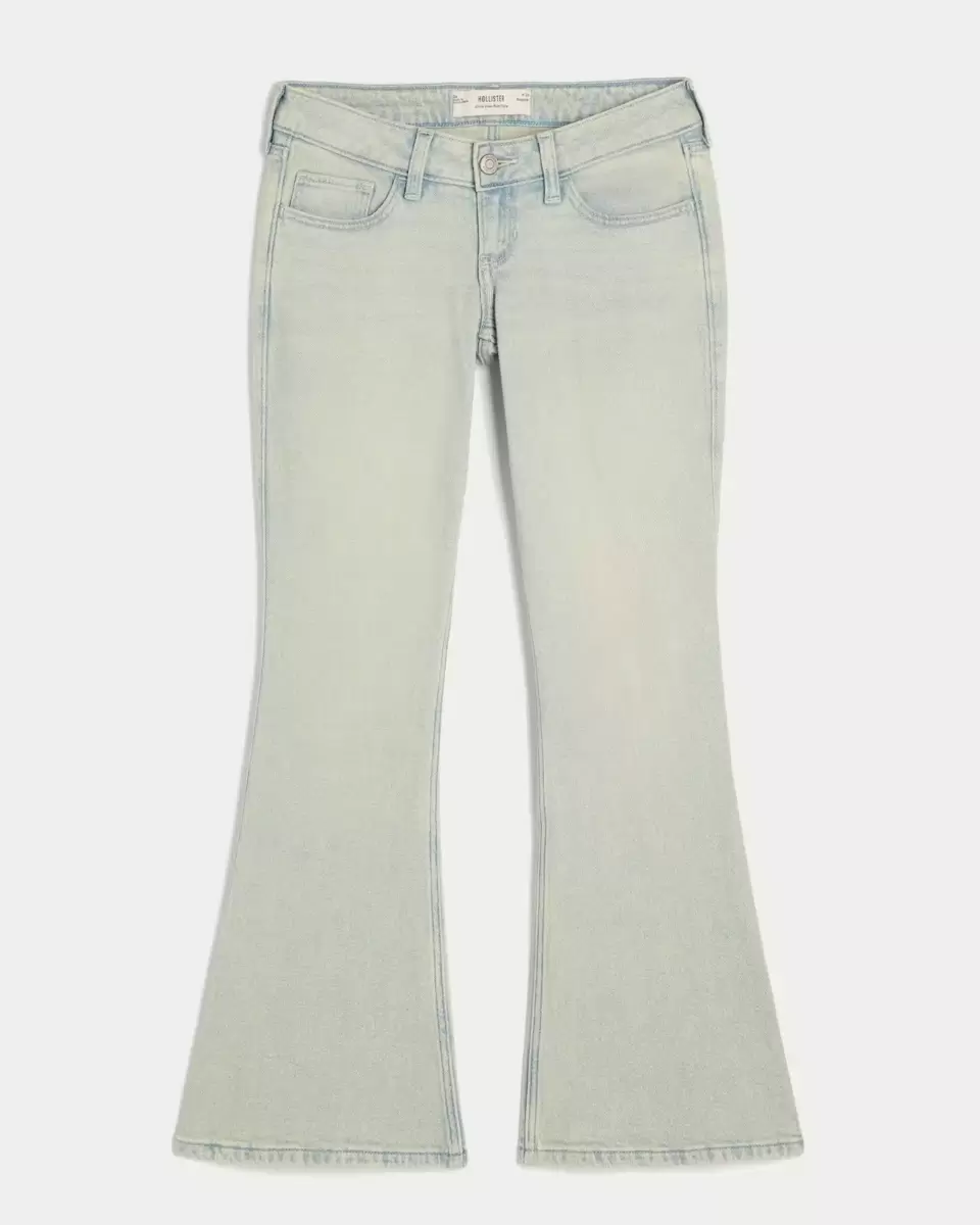 Comfortable jeans in Vintage Stretch denim, designed with an ultra low-rise waist and flared hem. Light wash with fading and whiskering. Imported.