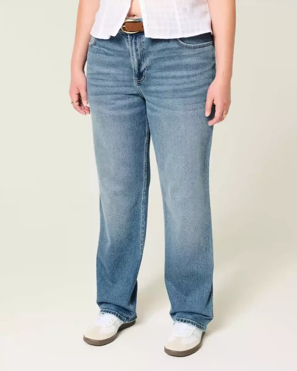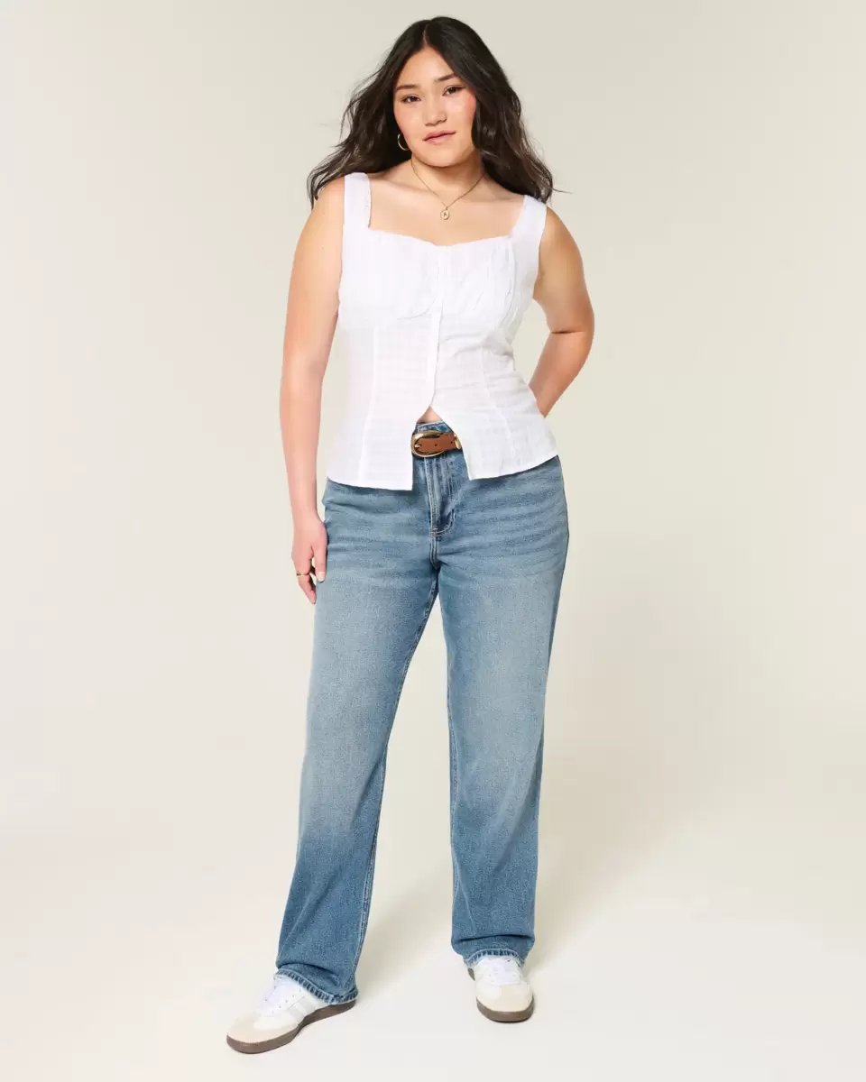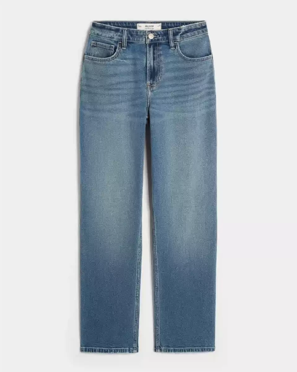 Comfortable jeans made with Vintage Stretch denim in a dark wash, designed with a flattering high-rise waist and straight leg. Fading, whiskering. Imported.