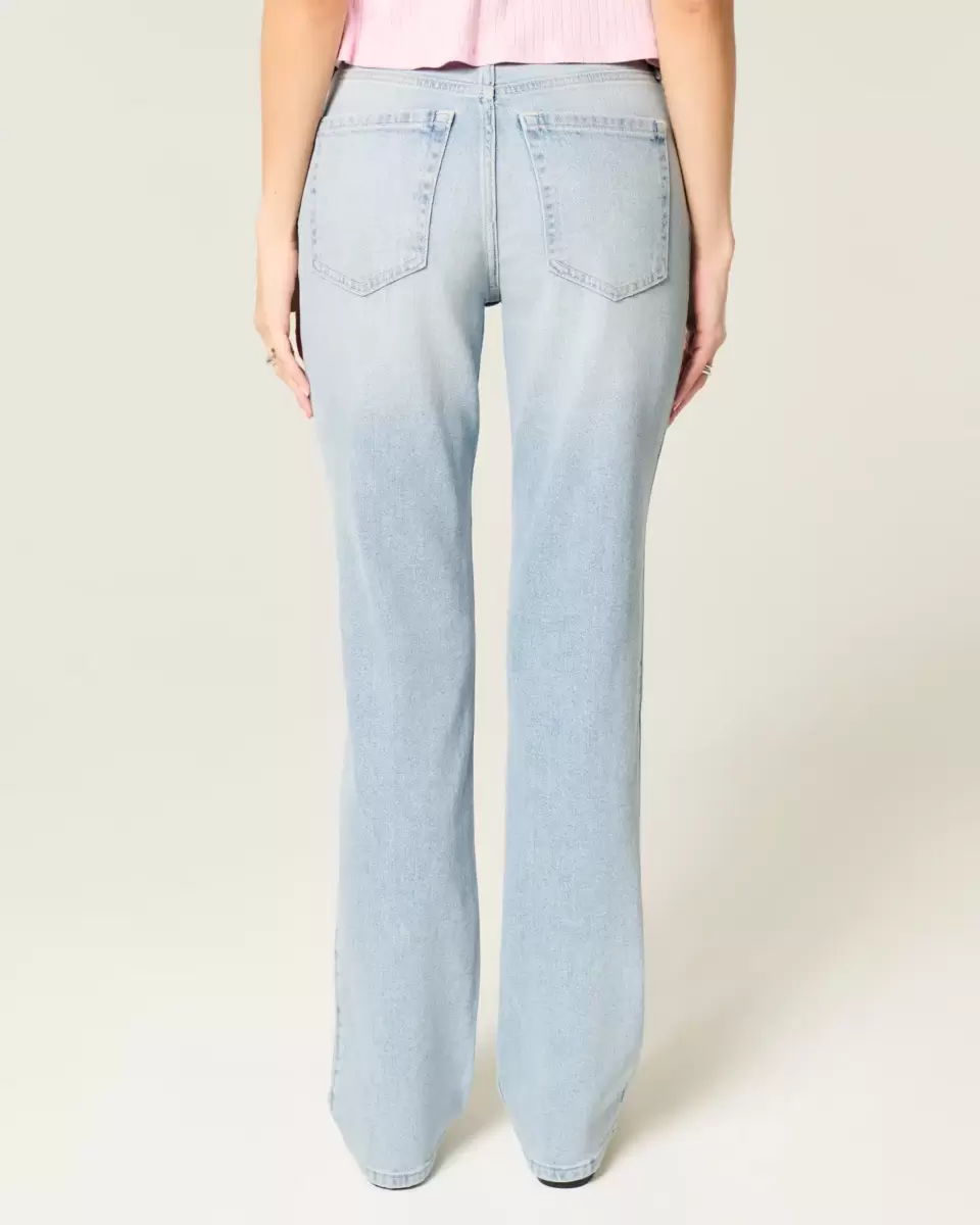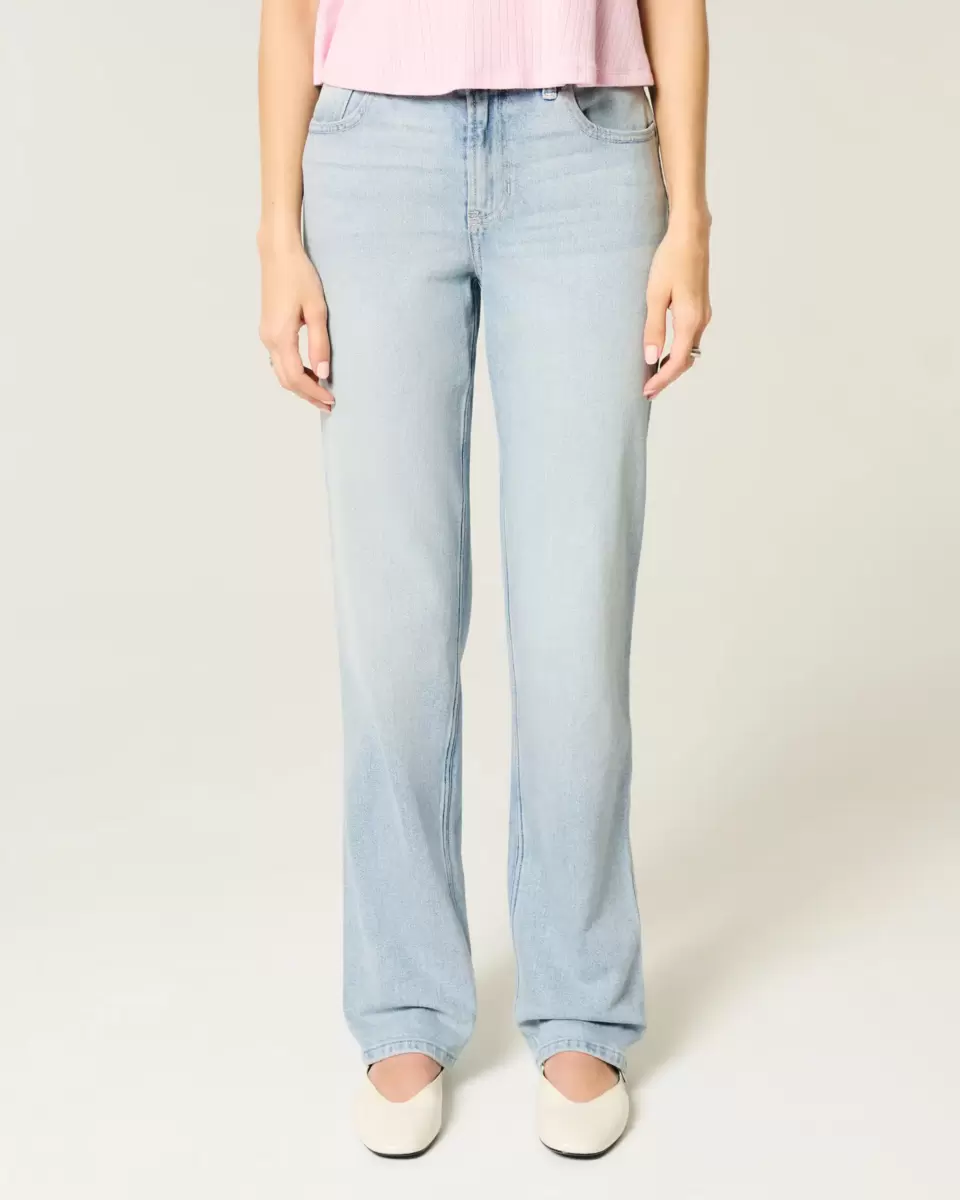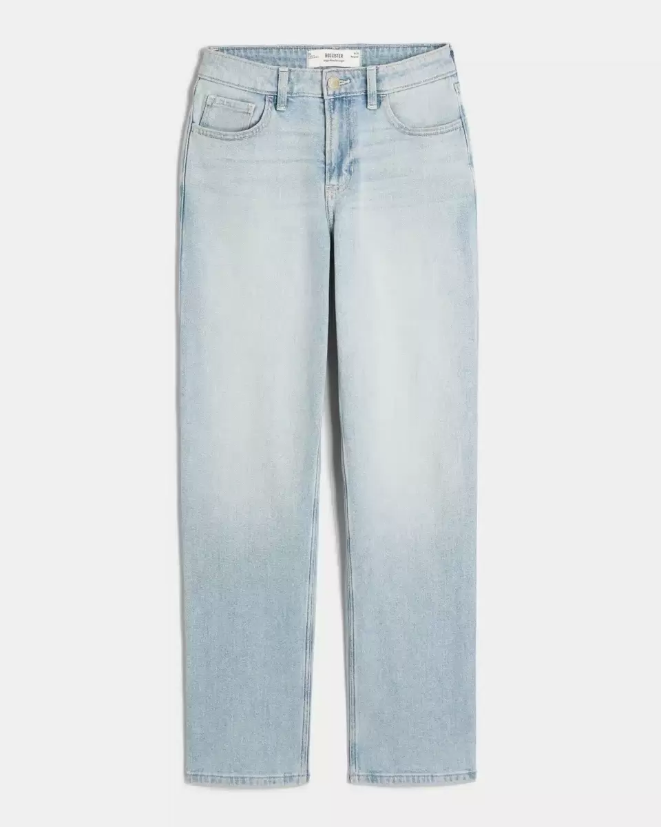 Comfortable denim jeans in light wash, designed with a flattering high-rise waist and straight leg. Fading, whiskering. Imported.