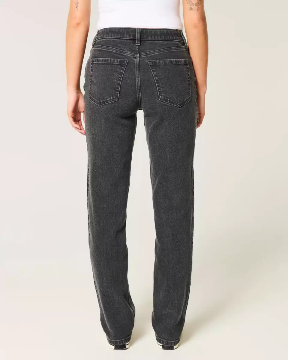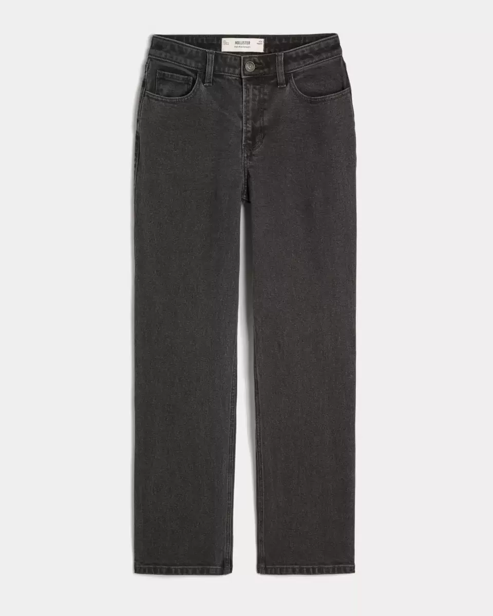 Ultra-comfortable jeans in washed black denim, designed with a flattering high-rise waist and straight leg. Vintage Stretch denim for a comfortable fit. Imported.