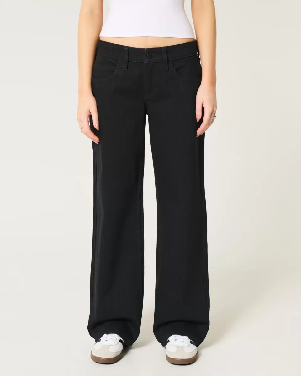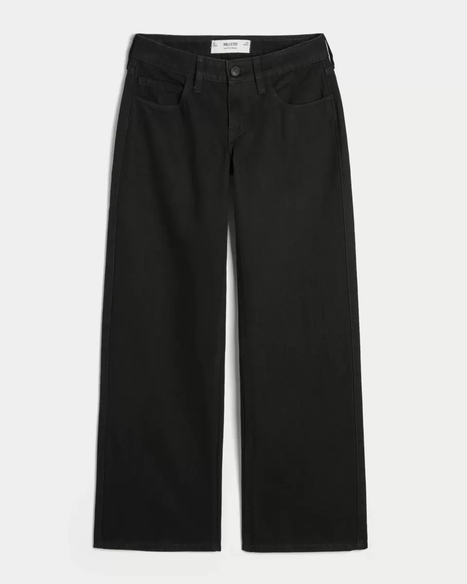 Ultra-comfortable denim jeans in black, designed with a low-rise waist and baggy leg. Imported.