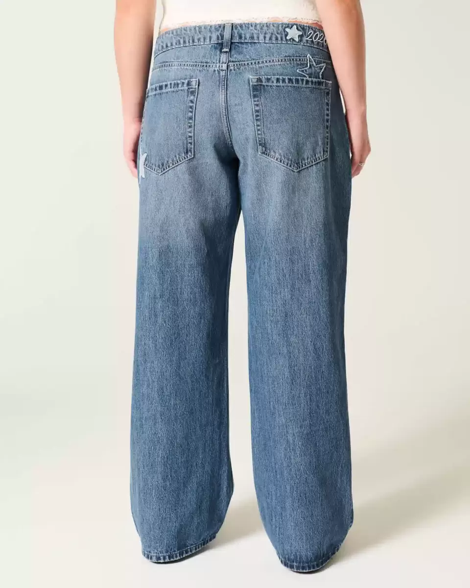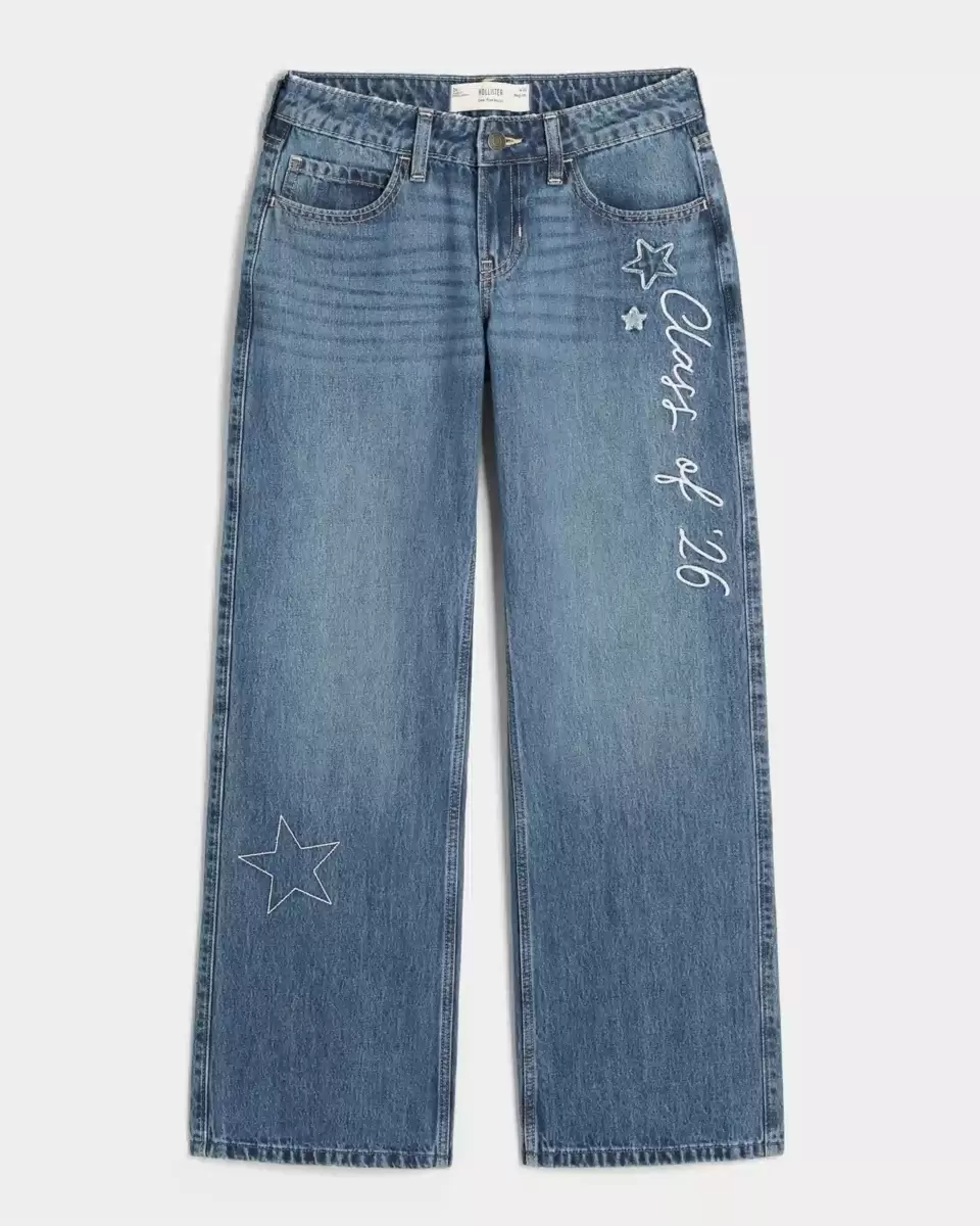 Low-Rise Dark Wash Class of ’26 Embroidered Baggy Jeans