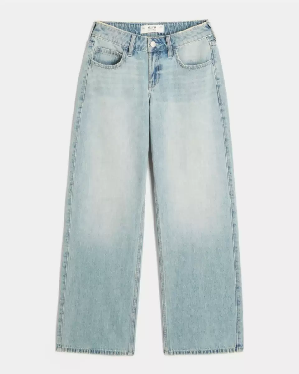 Comfortable denim jeans in a light wash, designed with a baggy leg and flattering low-rise waist. Fading, whiskering. Imported.