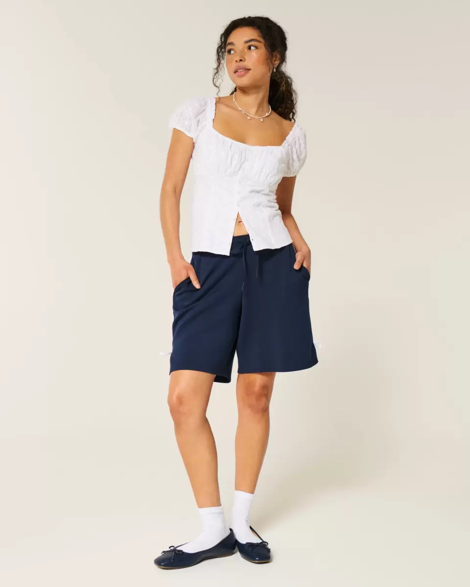 Comfy shorts made with our super soft Cooldown fabric. Drawstring waist, side bow details.