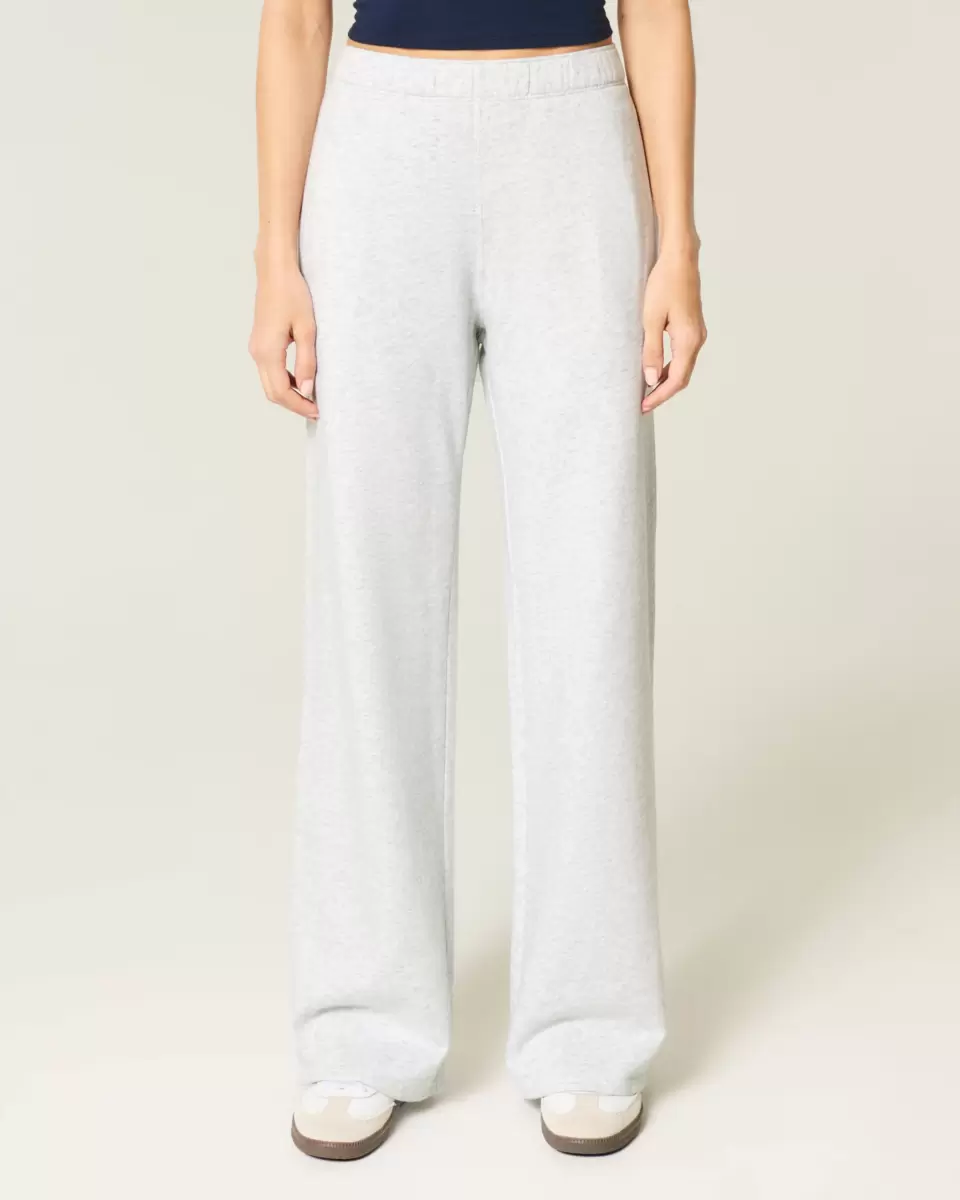 Super soft fleece sweatpants designed with a wide leg and banded waist. Heart-shaped back pocket. Imported.
