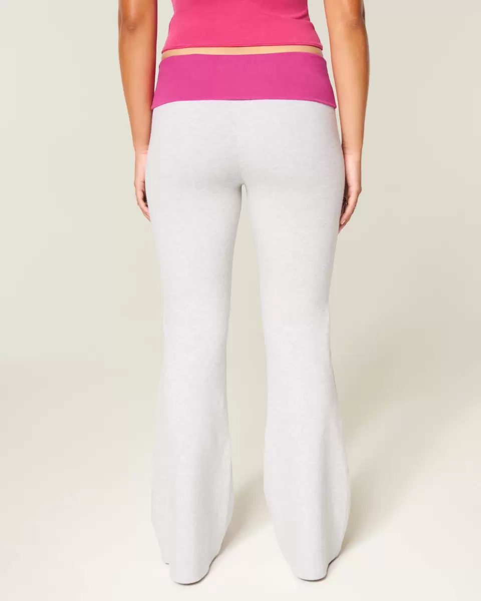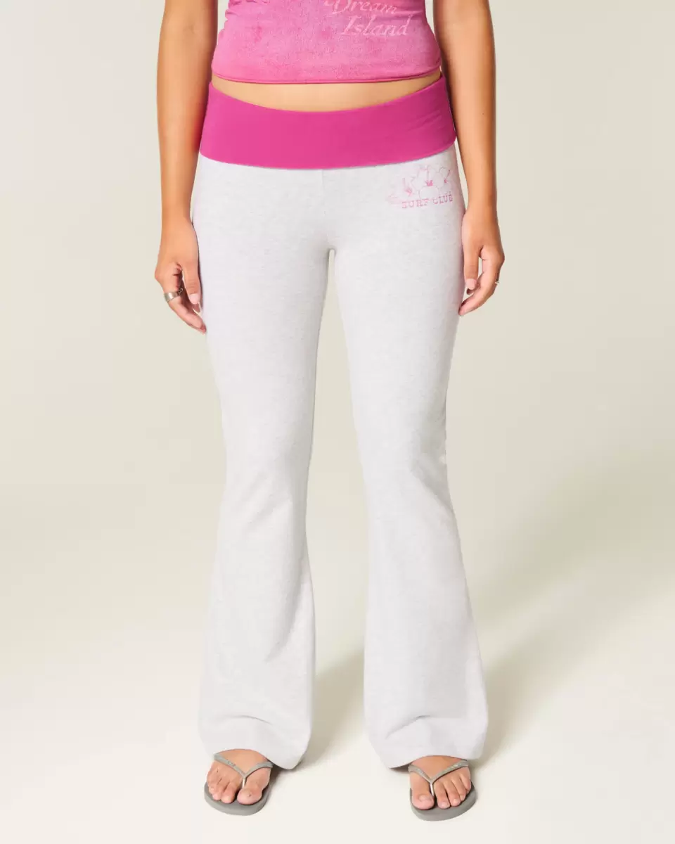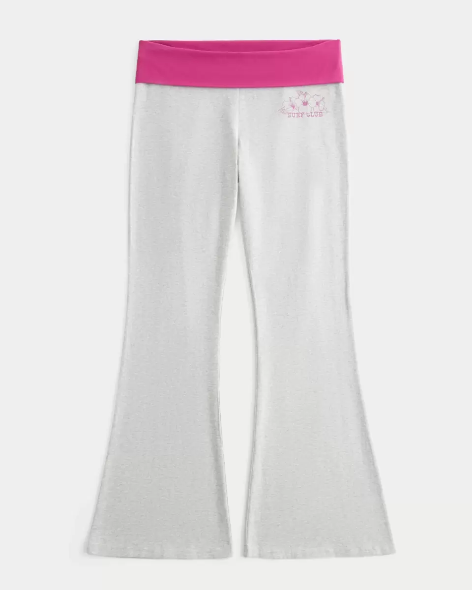 Super soft fleece pants with a mid-rise foldover waist. Surf club graphic, flared hem. Imported.
