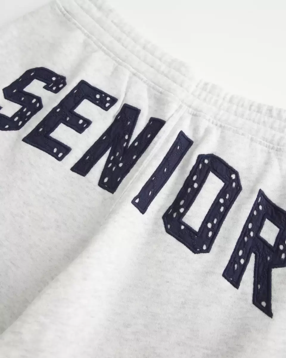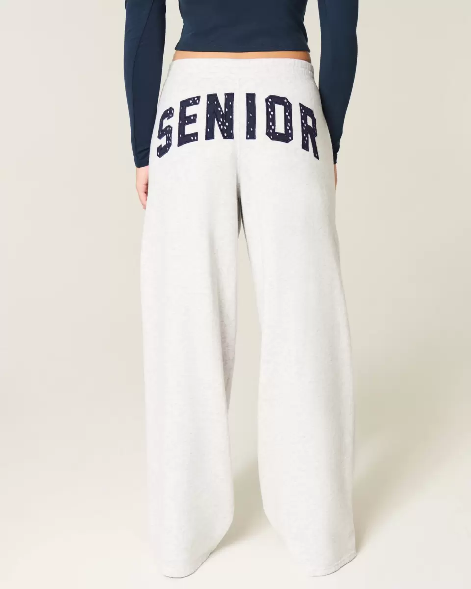 Super soft fleece sweatpants designed with a baggy leg and banded waist. Front pockets, Senior graphic applique with eyelet embroidery at back. Imported.