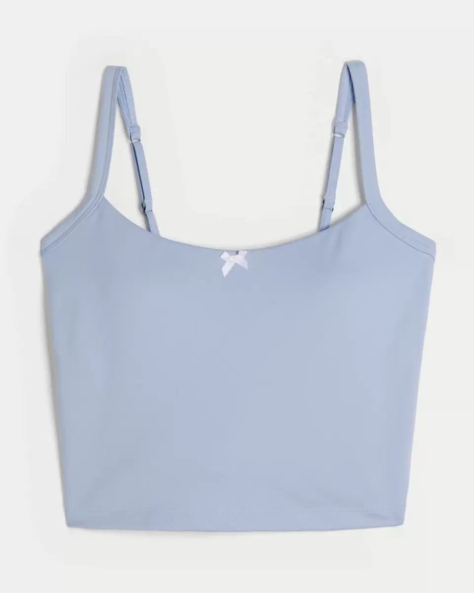 This cami is designed in our breathable, 4-way stretch, moisture-wicking Recharge fabric with a super soft, brushed feel. Removable pads, adjustable straps, cute bow detail at the center neckline. Imported.