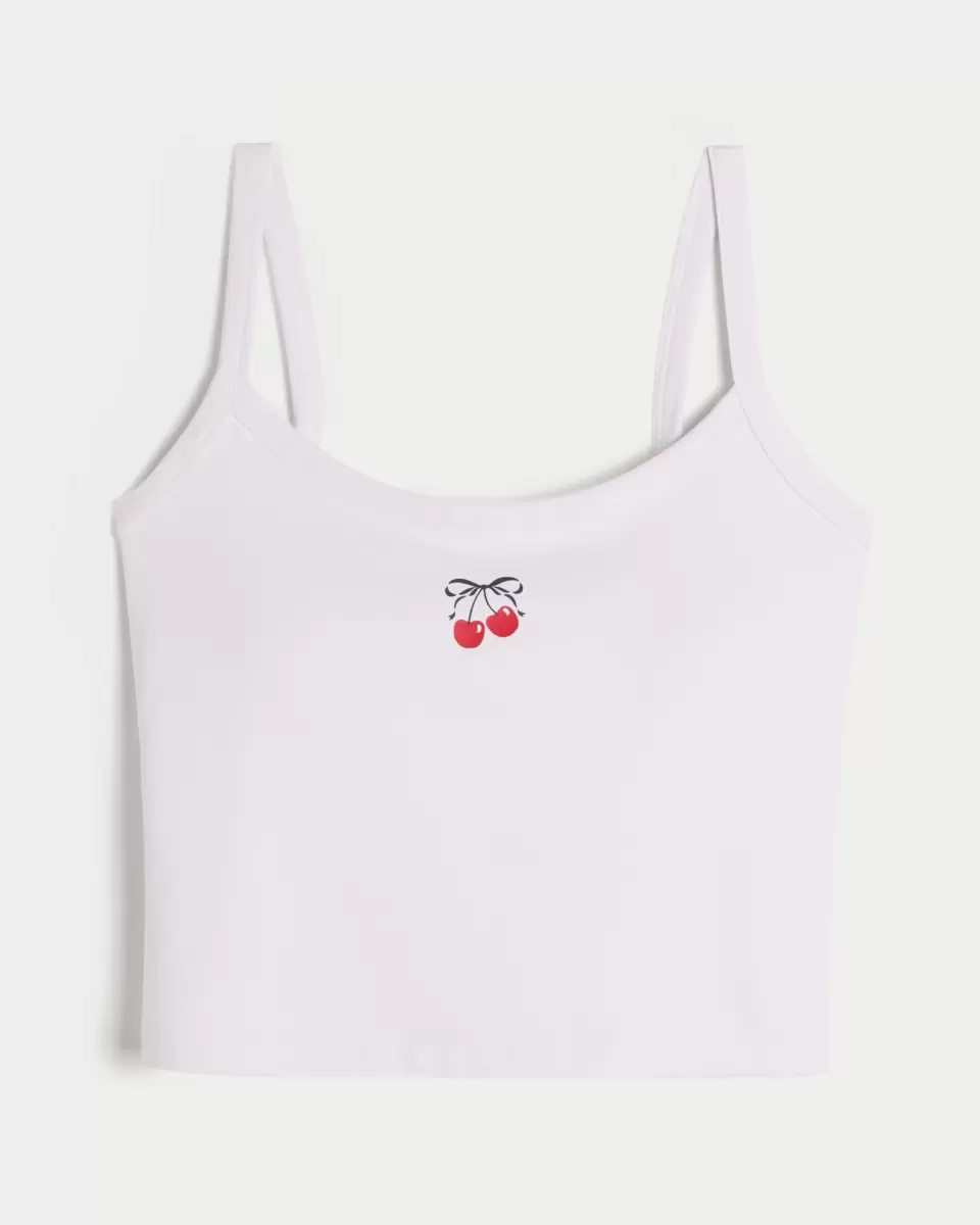 This ultra-comfortable tank is designed in our breathable, 4-way stretch, moisture-wicking Recharge fabric with a super soft, brushed feel. Cute cherry graphic, built-in shelf bra with removable pads. Imported.
