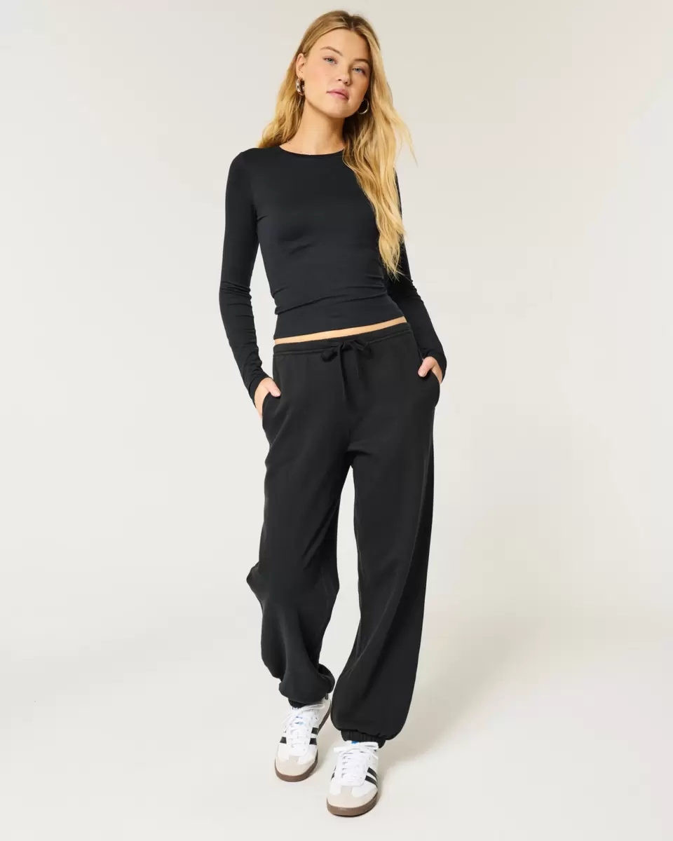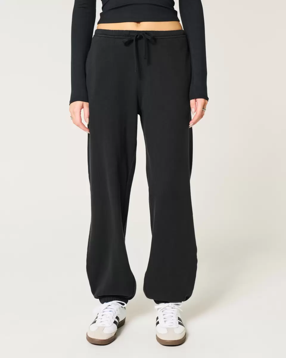 Super soft joggers in fleece fabric, designed with a drawstring waist and banded hems. Pockets, baggy leg. Imported.