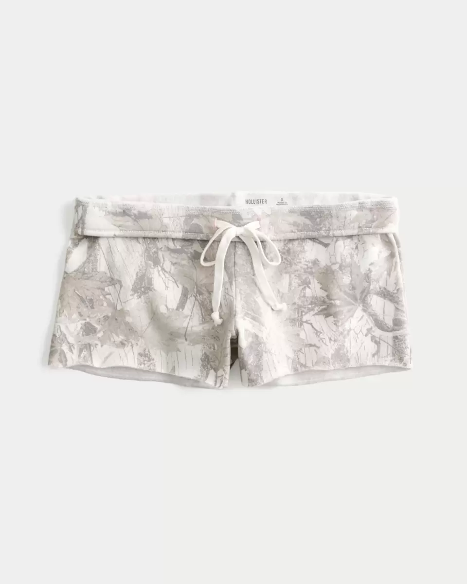 Super soft mini fleece shorts with an all-over camo pattern. Drawstring waist. Imported.
