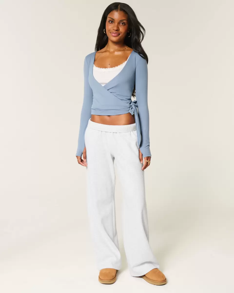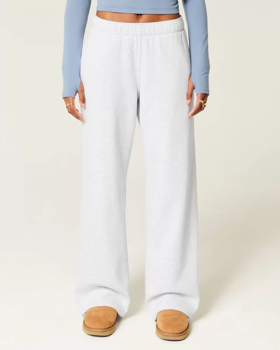 Super soft fleece sweatpants designed with a banded mid-rise waist and wide-leg silhouette. Front pockets, embroidered deer graphic at back pocket. Fold the waistband over to adjust the rise! Imported.