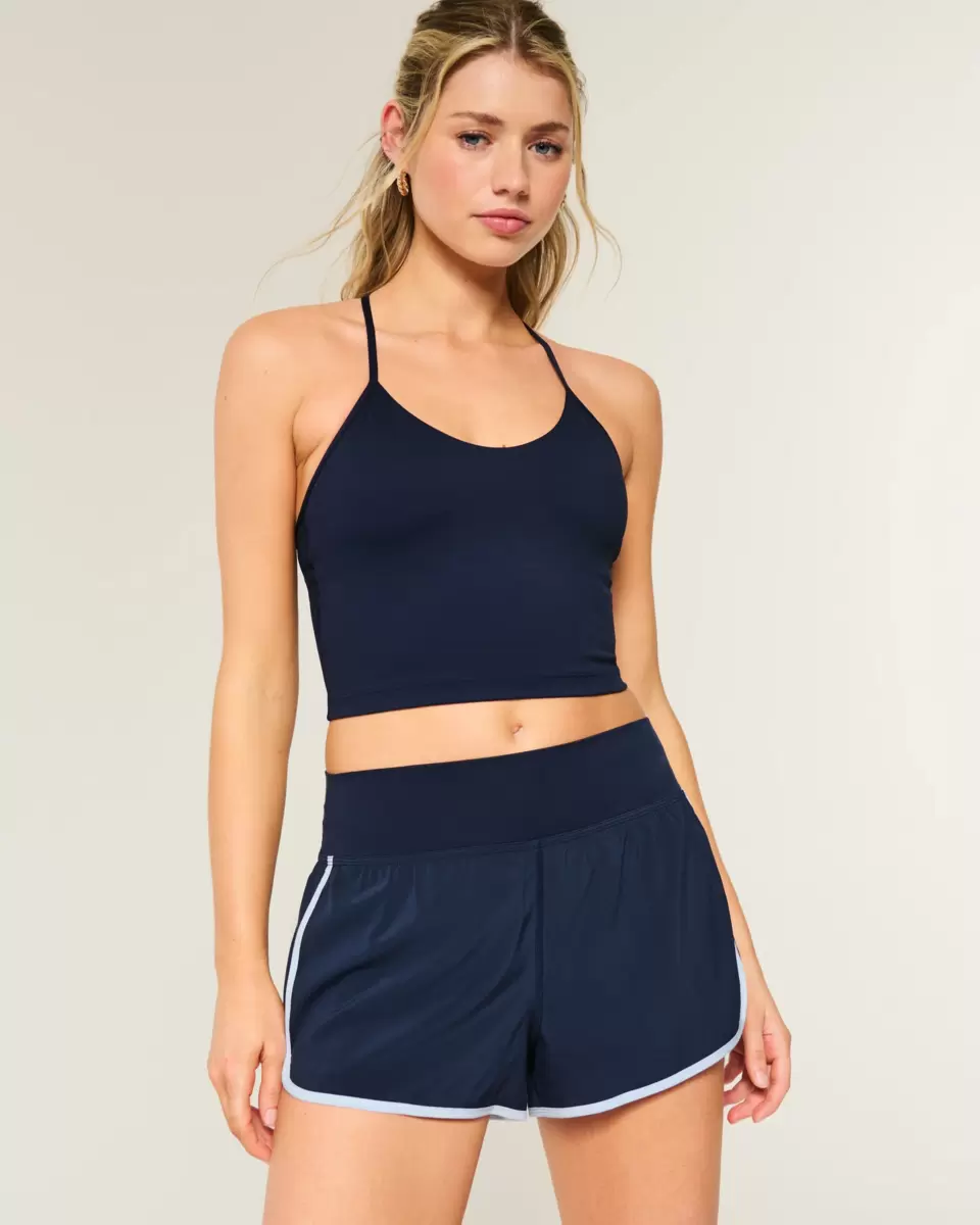 Cute and super soft, these running shorts are designed with a high-rise waist and inner shorts lining with pocket. Imported.