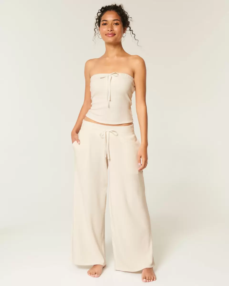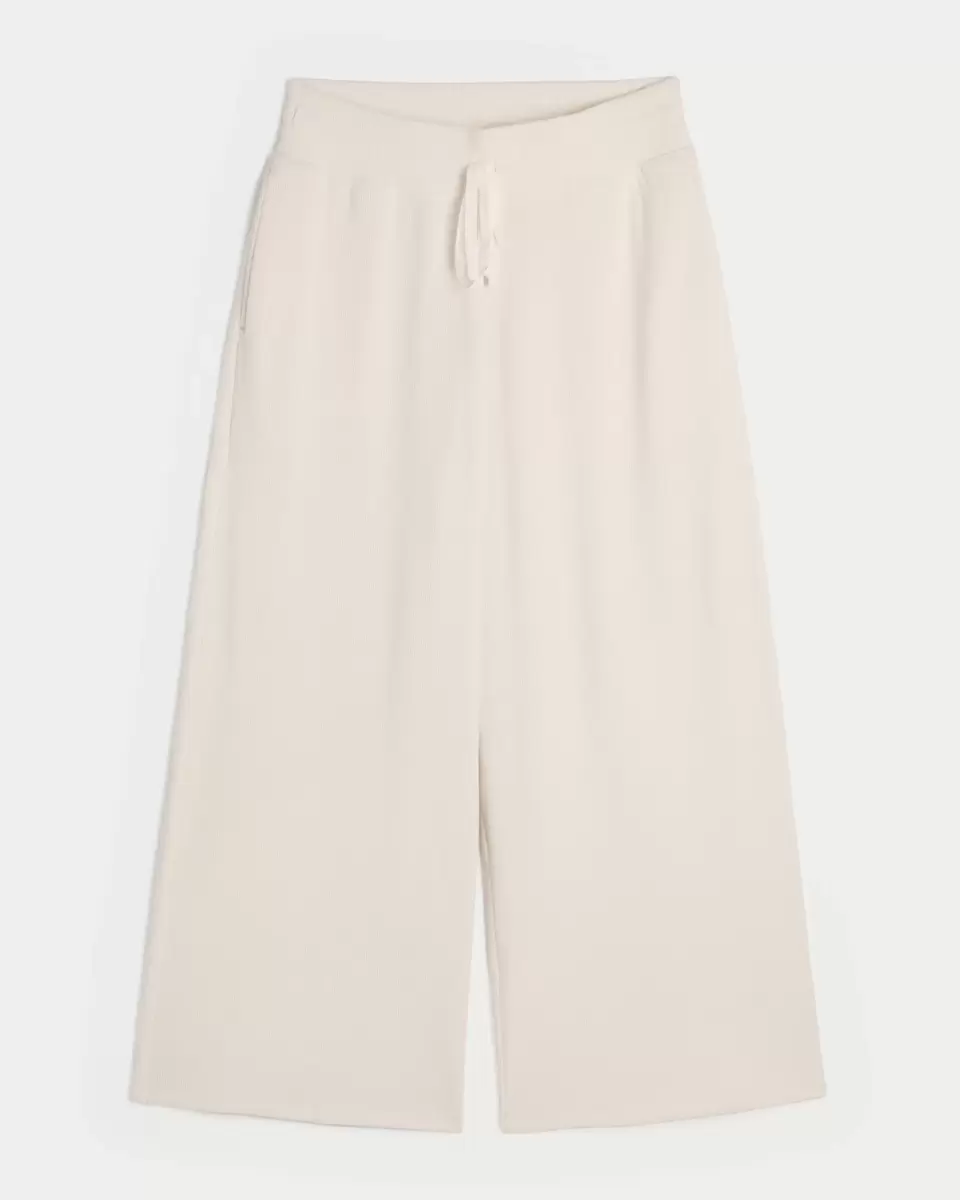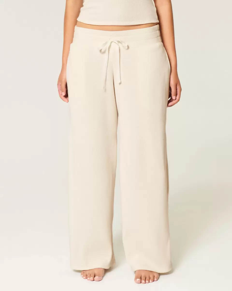Cozy and super soft pants in waffle fabric. Drawstring waist, pockets, flattering baggy silhouette. Imported.