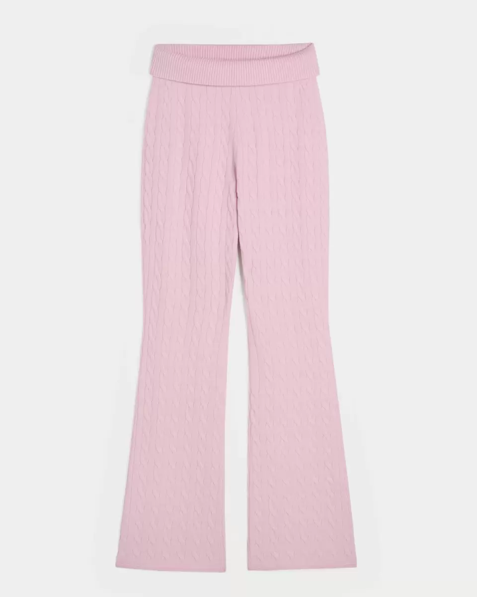 Cozy and super soft pants in cozy sweater-knit fabric with classic cable patterns. Foldover waist, slim leg, boot hem. Imported.