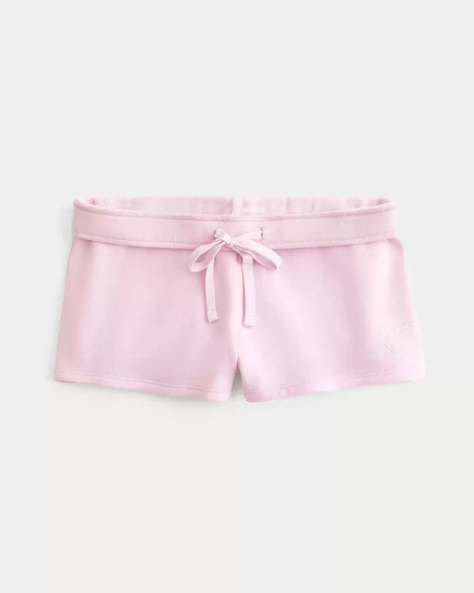 Cute and super soft fleece mini shorts with a cute rhinestone heart graphic. Soft mid-rise drawstring waist can be folded over to low-rise. Imported.