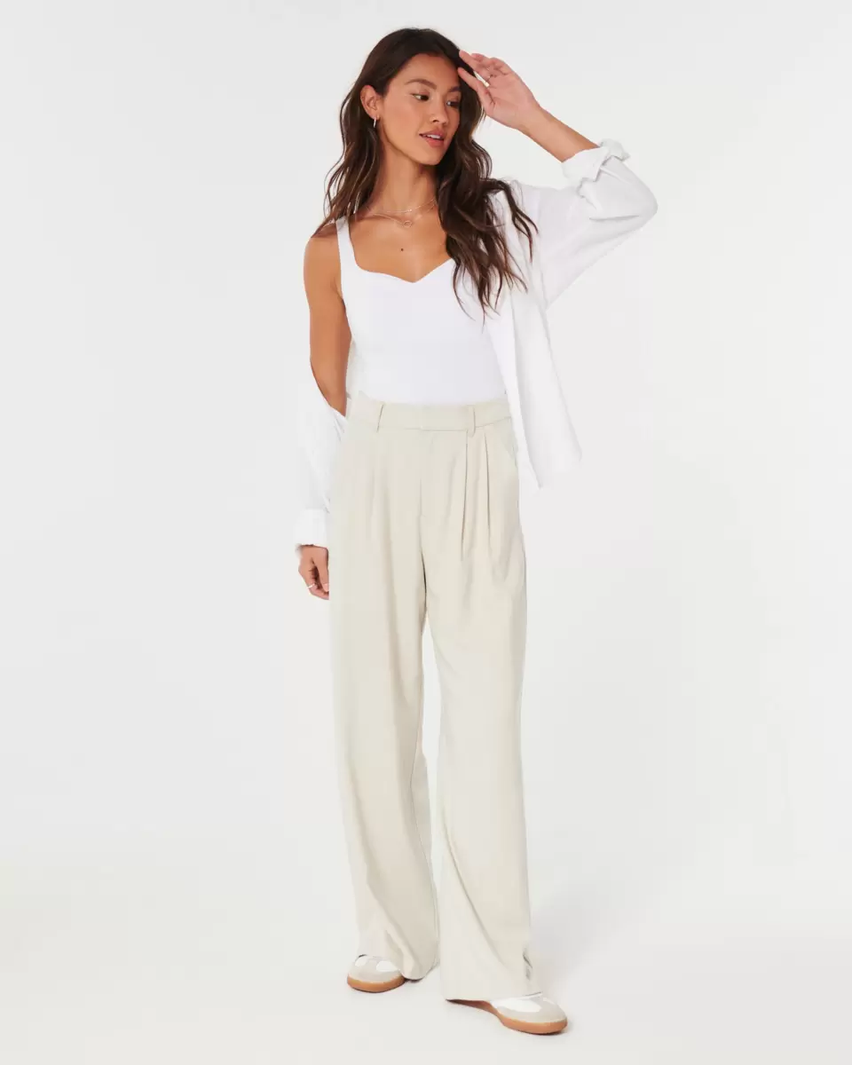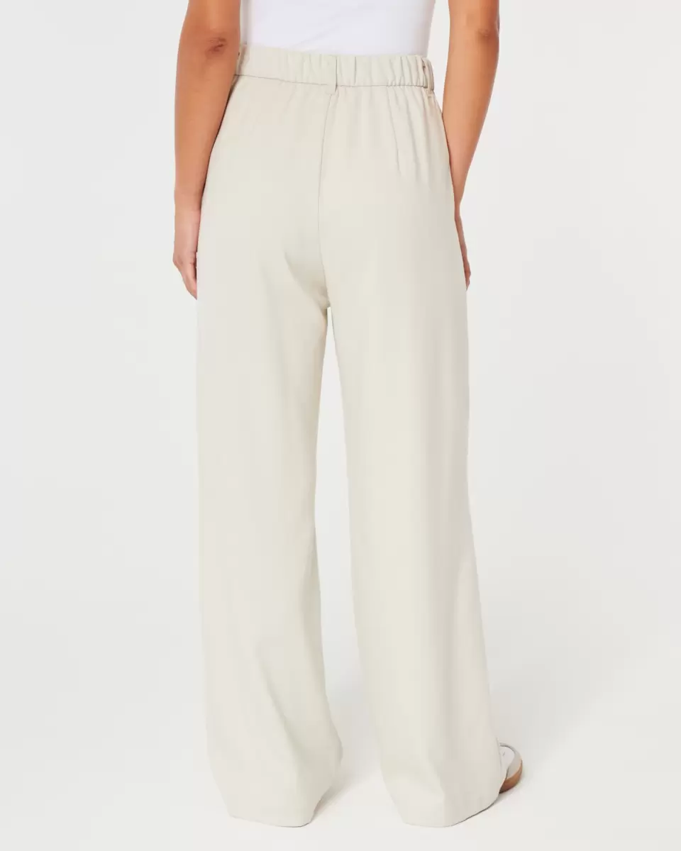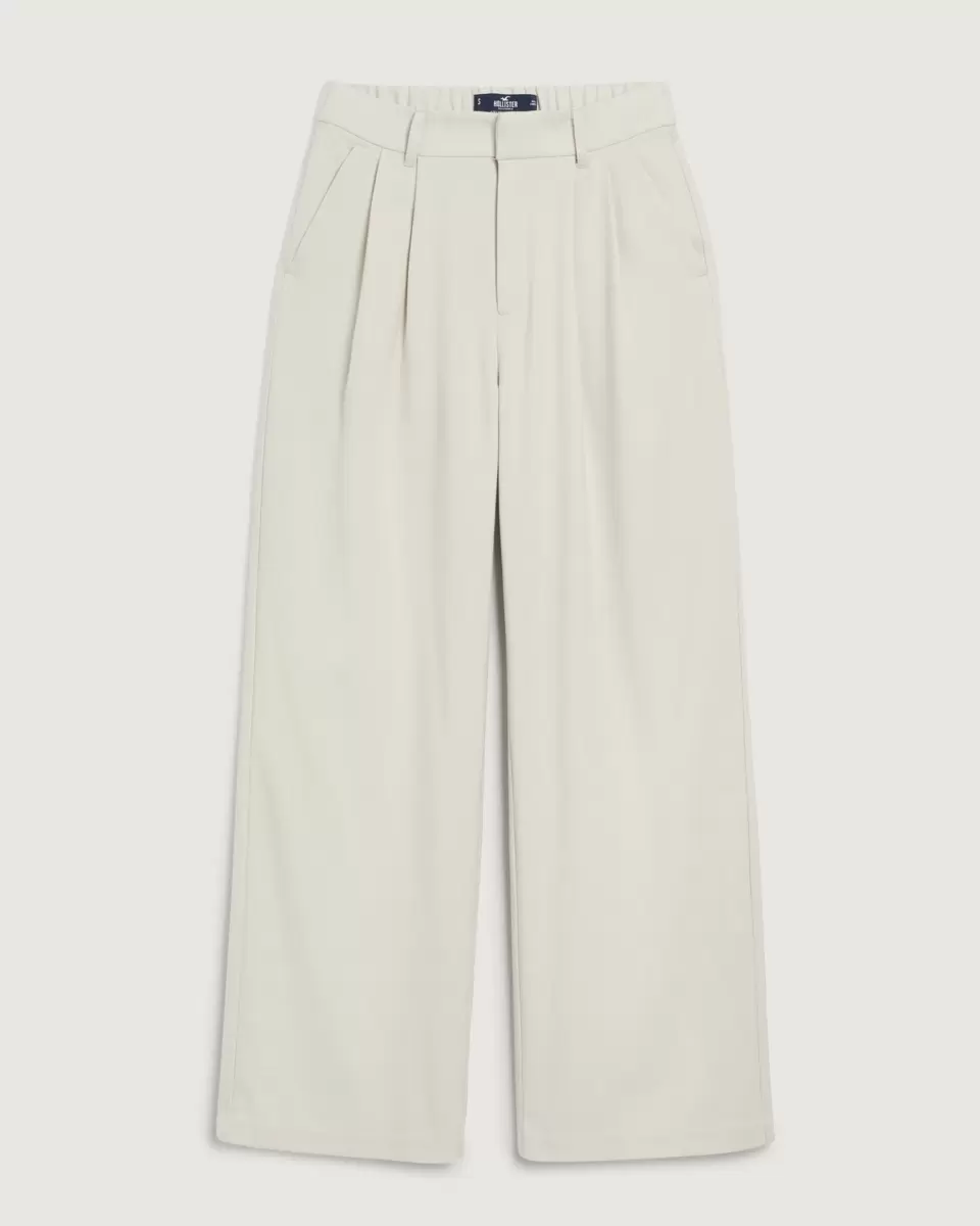 Ultra high-rise pants featuring pleated detailing for a classic tailored look. Comfortable wide-leg silhouette. Comfort waistband. Imported.