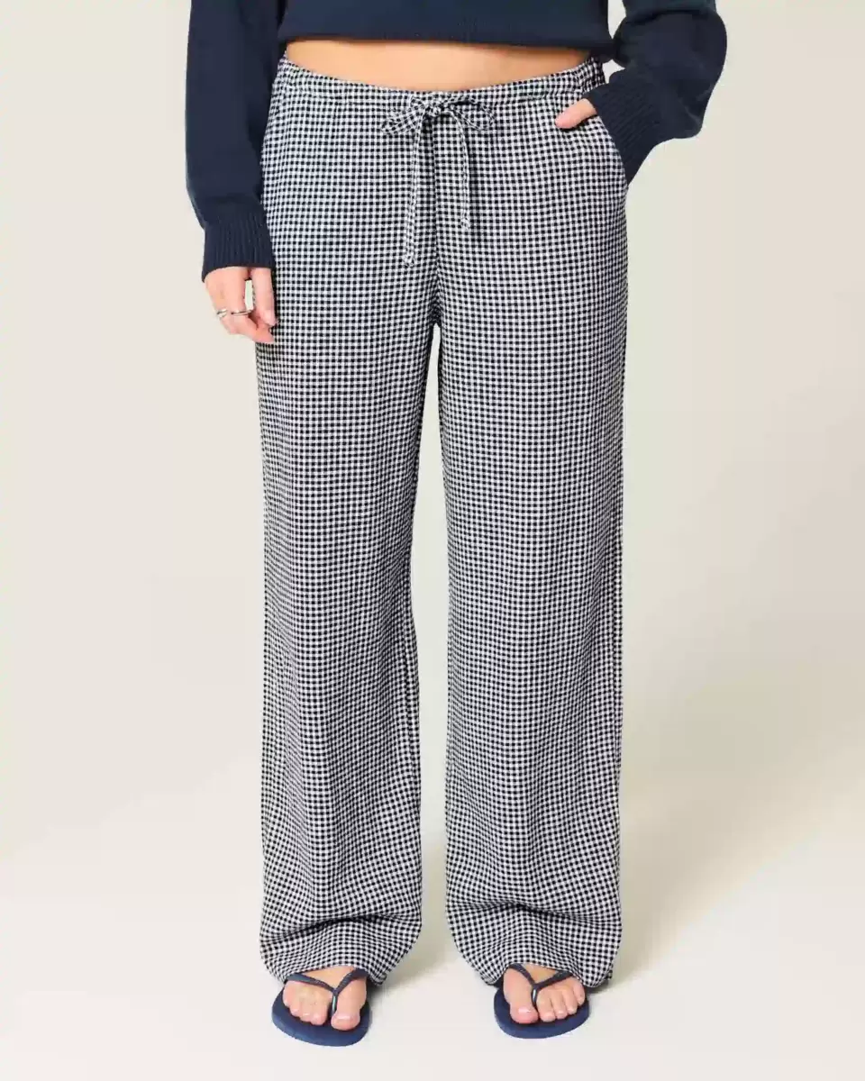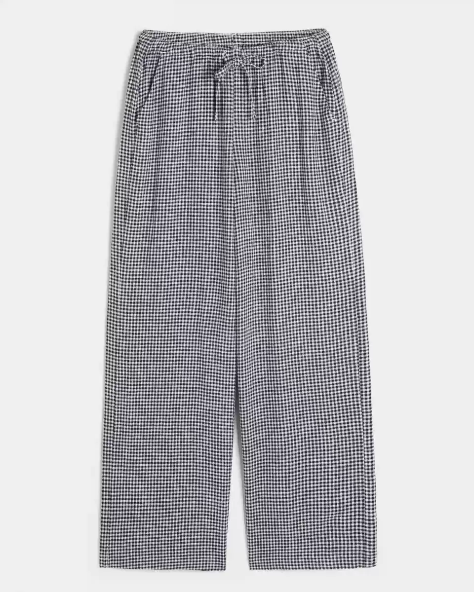 Comfy pants in a soft linen blend, designed with a baggy leg and pull-on drawstring waist. Pockets. Imported.