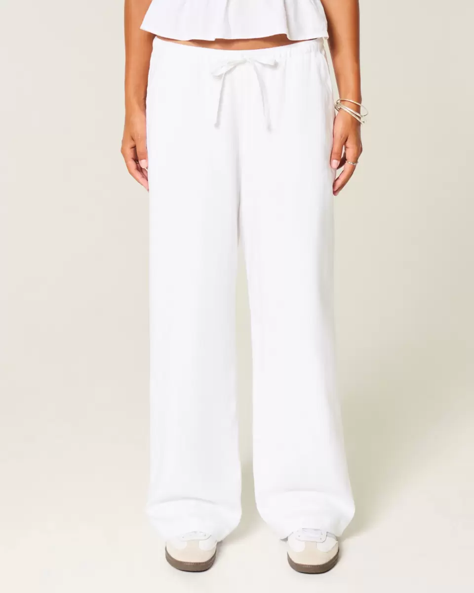 Soft and comfy pants in a linen blend, designed with a baggy leg and pull-on drawstring waist. Pockets, adjustable rise. Imported.
