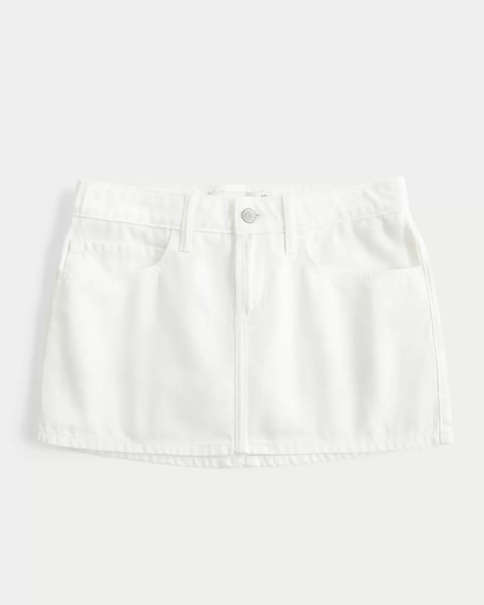 A cute denim mini skort designed with a low-rise waist and hidden knit shorts. White. Imported.