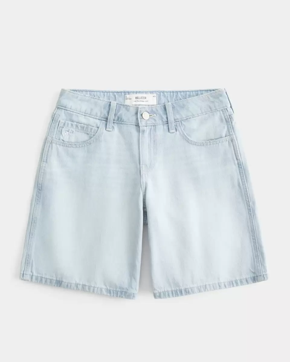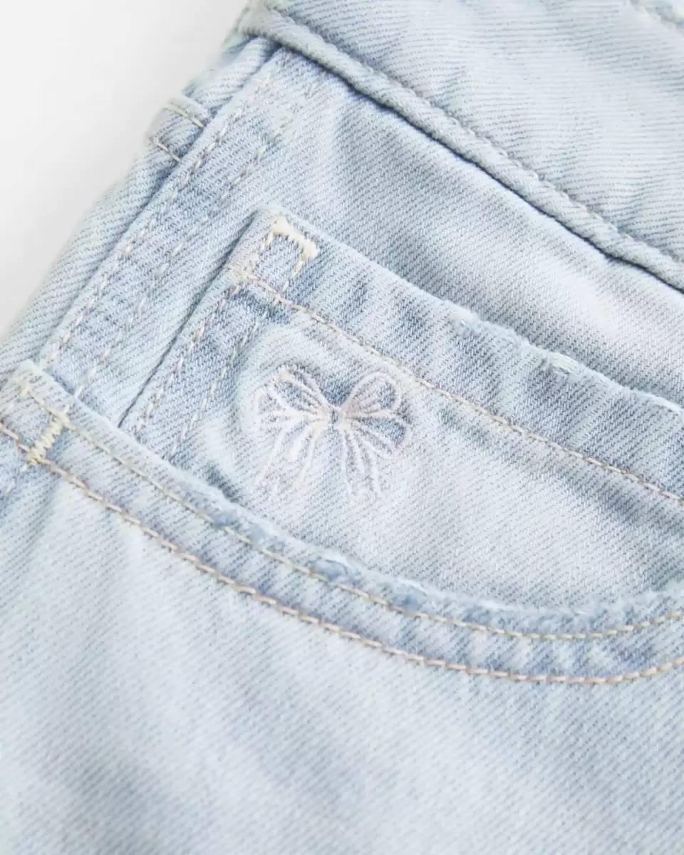 Low-Rise Light Wash Bow Graphic Baggy Jort