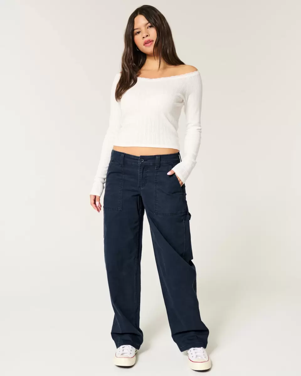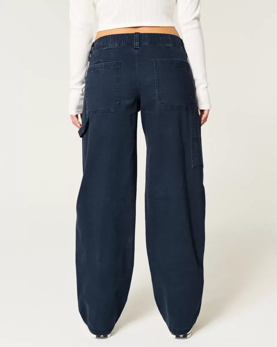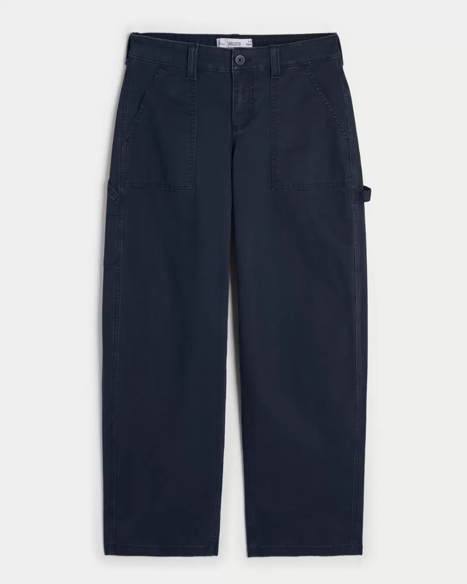 Your new fave pants are designed with a low-rise waist and baggy leg that tapers to a narrower opening. Left hammer loop, extra pockets, twill fabric. Imported.