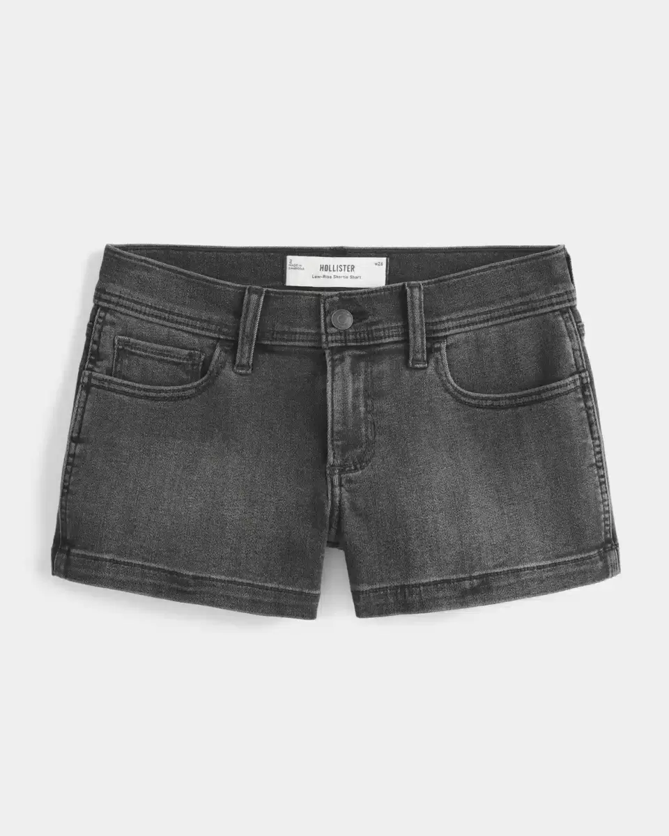 Cute and comfy denim shortie shorts in washed black. Low-rise waist.